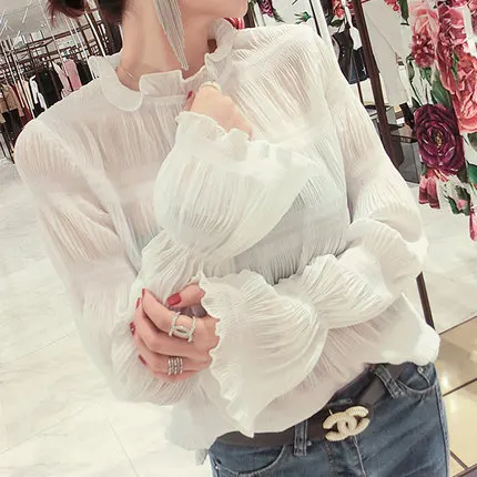 Корейский 2020 летний женский топ Blusa Mujer кружевная шифоновая блузка женская рубашка с длинным рукавом Женские топы и блузки дамского размера плюс
