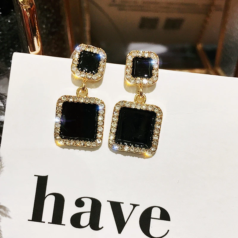 Новое поступление 2019, роскошные серьги, черные квадратные геометр...