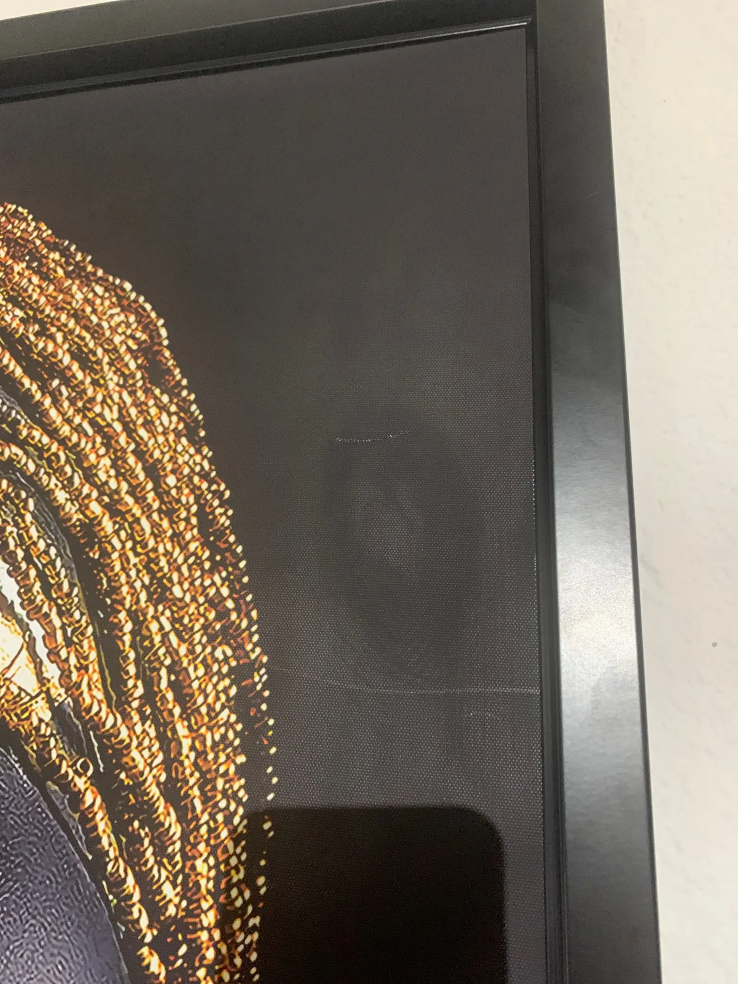 Качество вроде нормальное, но полотно надо как то натягивать. А как это сделать, если рама с клеем!? Было бы лучше, если полотно полностью было чёрным, без белых краёв.Раму замерял. Размер точный.