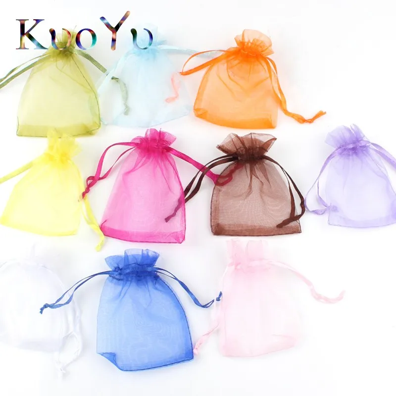 50 шт. 7x9 9x12 10x15 сумки из органзы для упаковки ювелирных изделий подарочные Свадебные украшения упаковка с завязкой