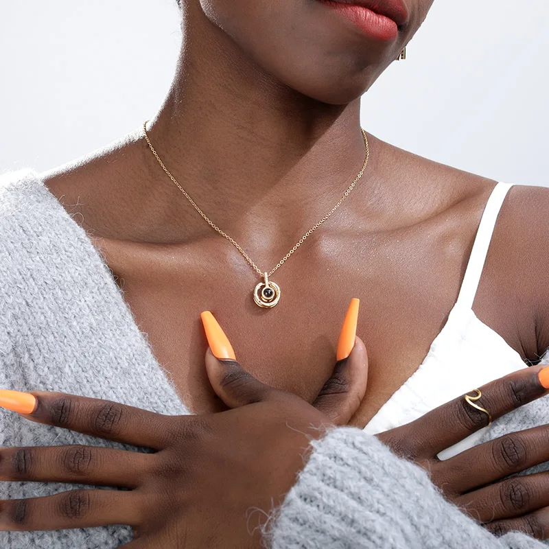 Розовое золото круговой проекции кристалл ожерелье 100 языков я люблю тебя кулон любовь память ожерелье женский чокер пары подарок