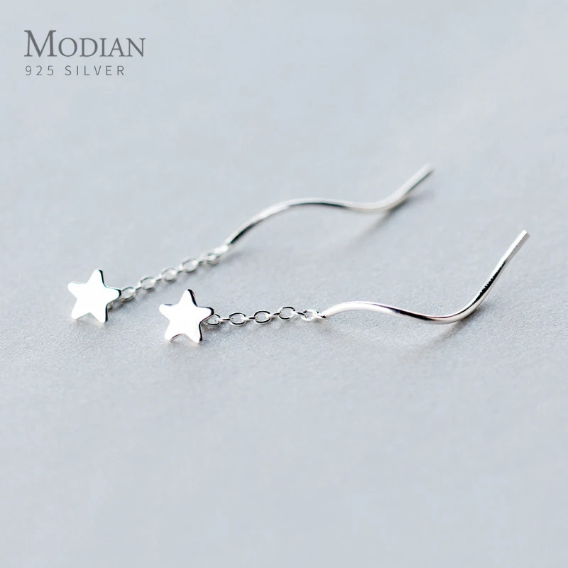 Modian натуральная 925 стерлингового серебра звезды Форма Висячие серьги, модные ювелирные изделия, серьги-капельки для женщин серебряные ювелирные изделия подарок для девочки