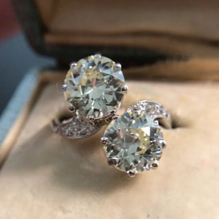 Женское кольцо из серебра 925 пробы, с двумя овальными фианитами