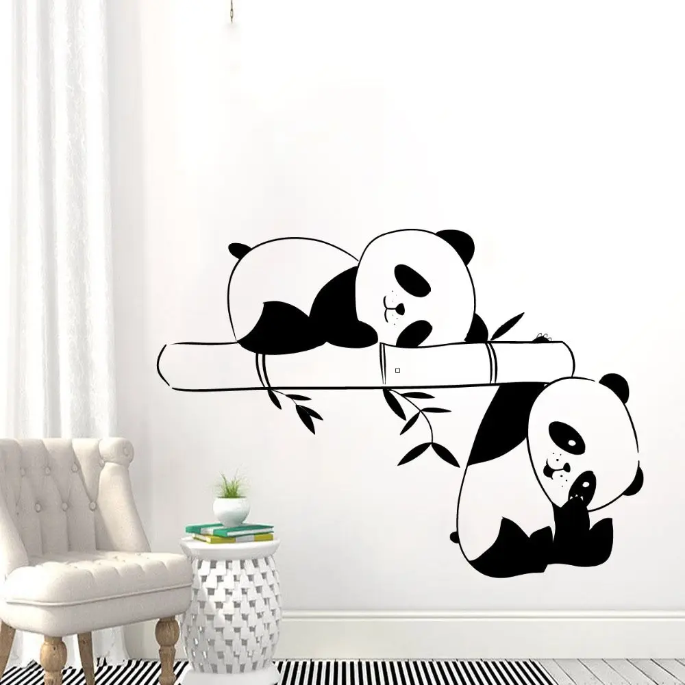 Две милые панды, играющие в бамбуке, настенные наклейки, искусство, животные, украшение для дома и гостиной a00c2