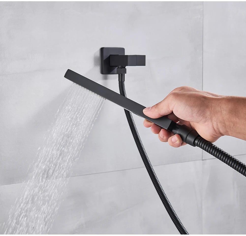 Отделка: матовый черныйТип: смеситель для душа для ванной комнатыДушевая головка: 8 дюймов -- 20 см, 10 дюймов -- 25 см,12 дюймов -- 30 см, 16 дюймов -- 40 смМатериал душевой головки: нержавеющая стальМатериал ручного душа: АБС-пластик класса АШланг для душа: 150 смКлапан смесителя для душа: латунный клапан смесителя