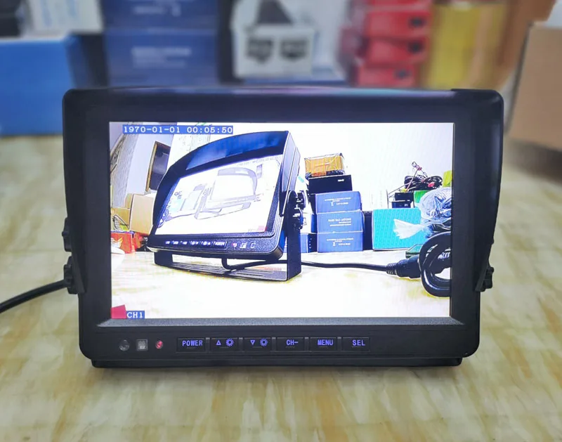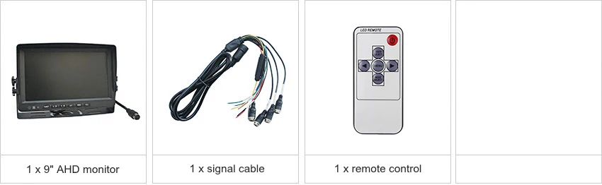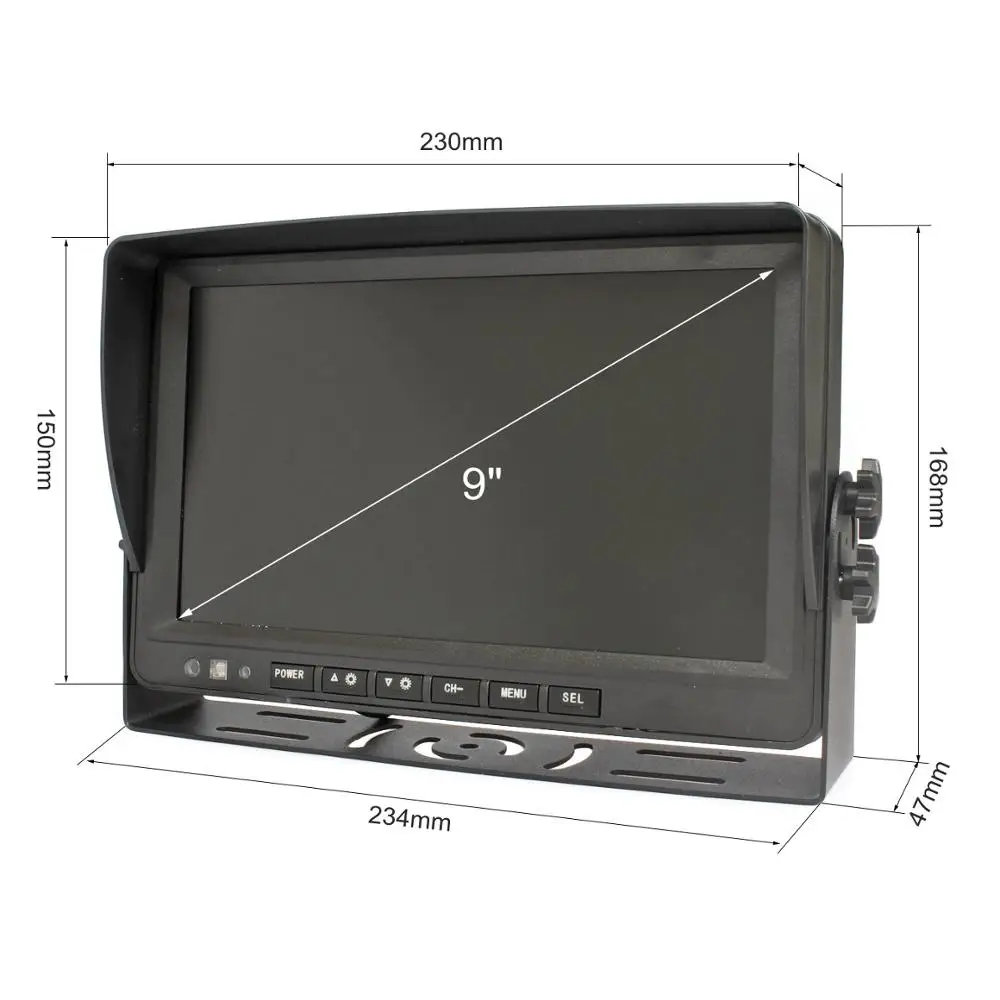 Экран AHD 9 "с разрешением 1024x600 подсветки, с установкой кронштейна. Возьмите с 4-контактным видео входом 4 x, может работать с AHD камерами заднего вида и камерами наблюдения.
