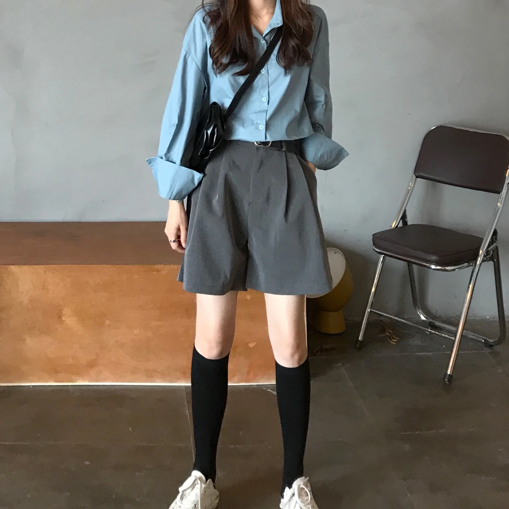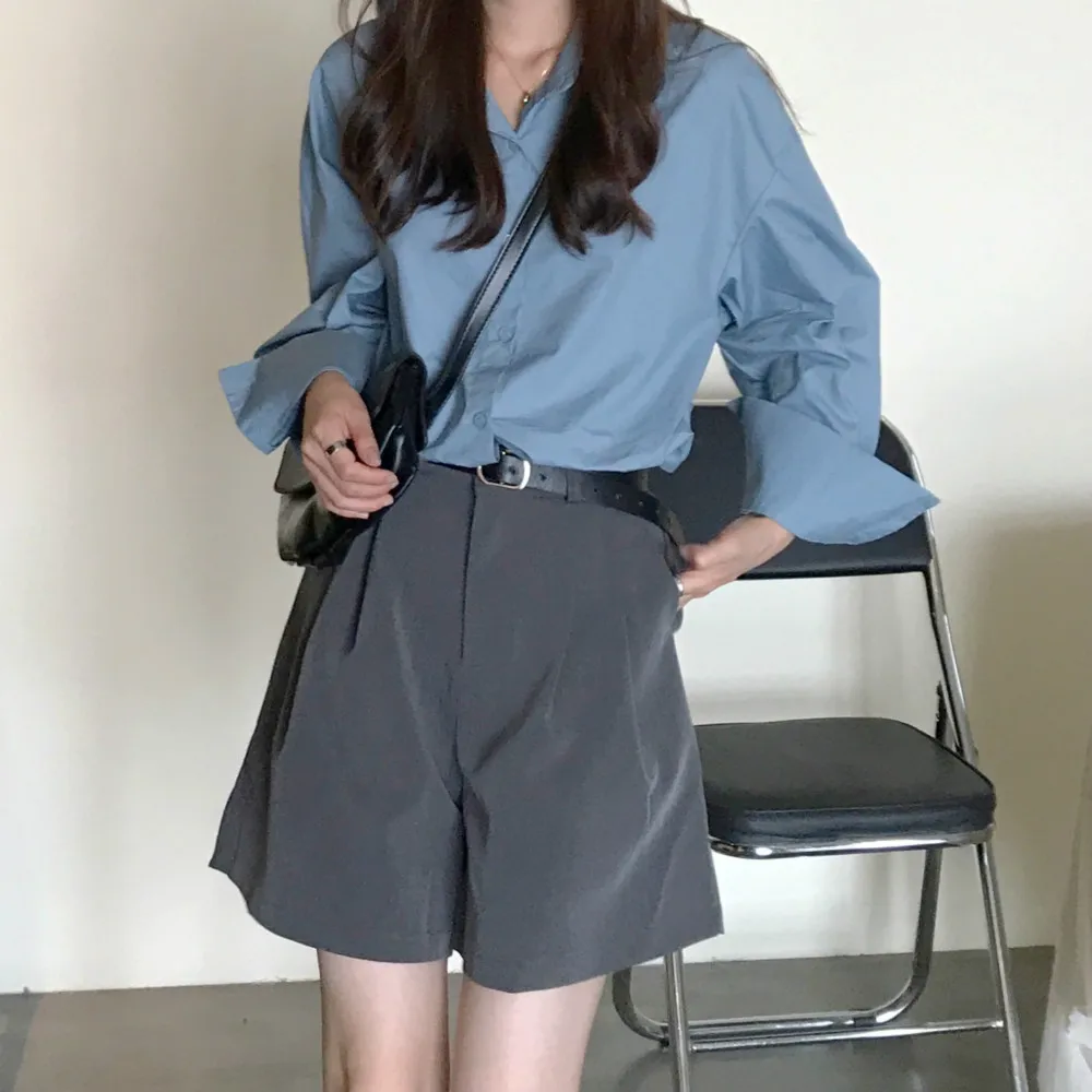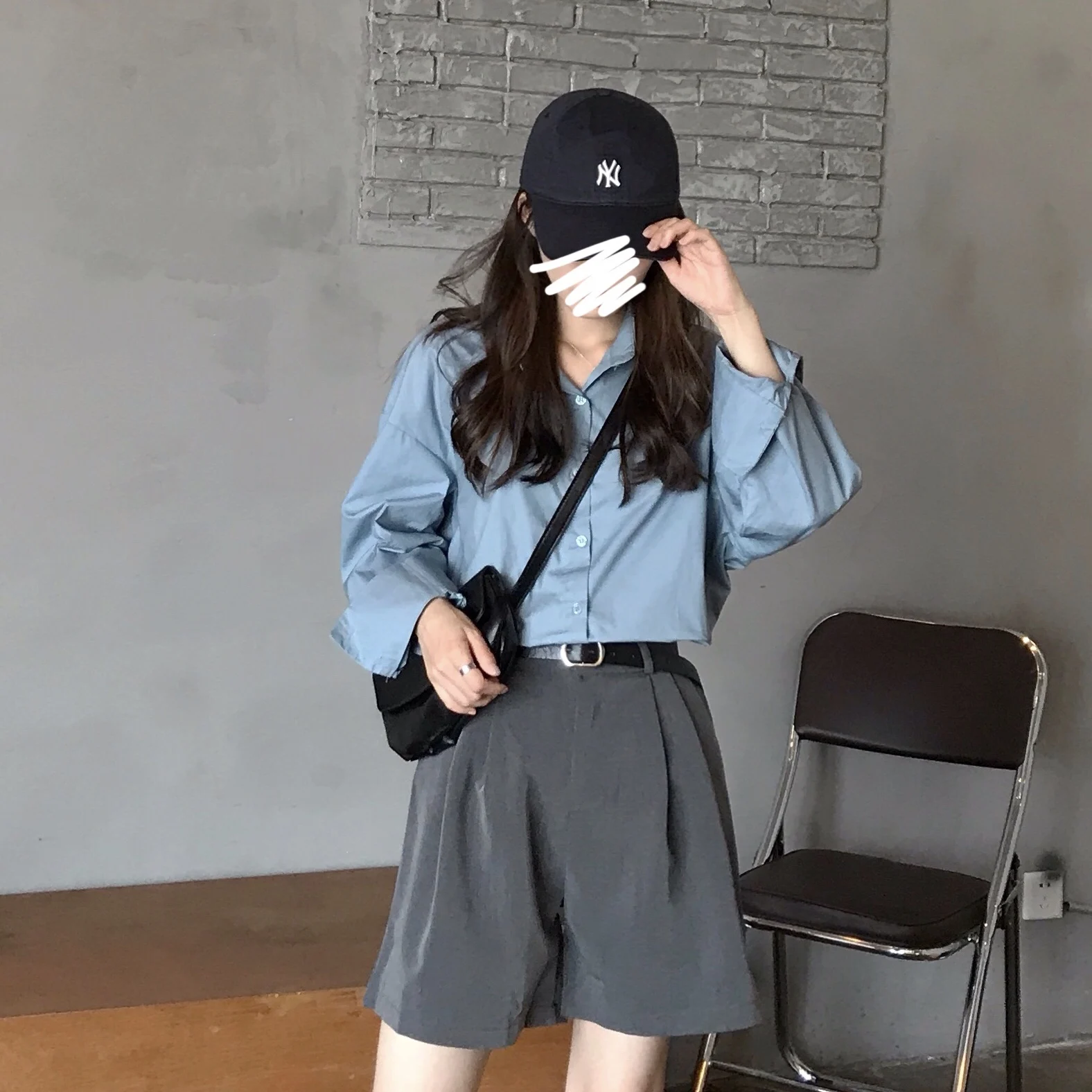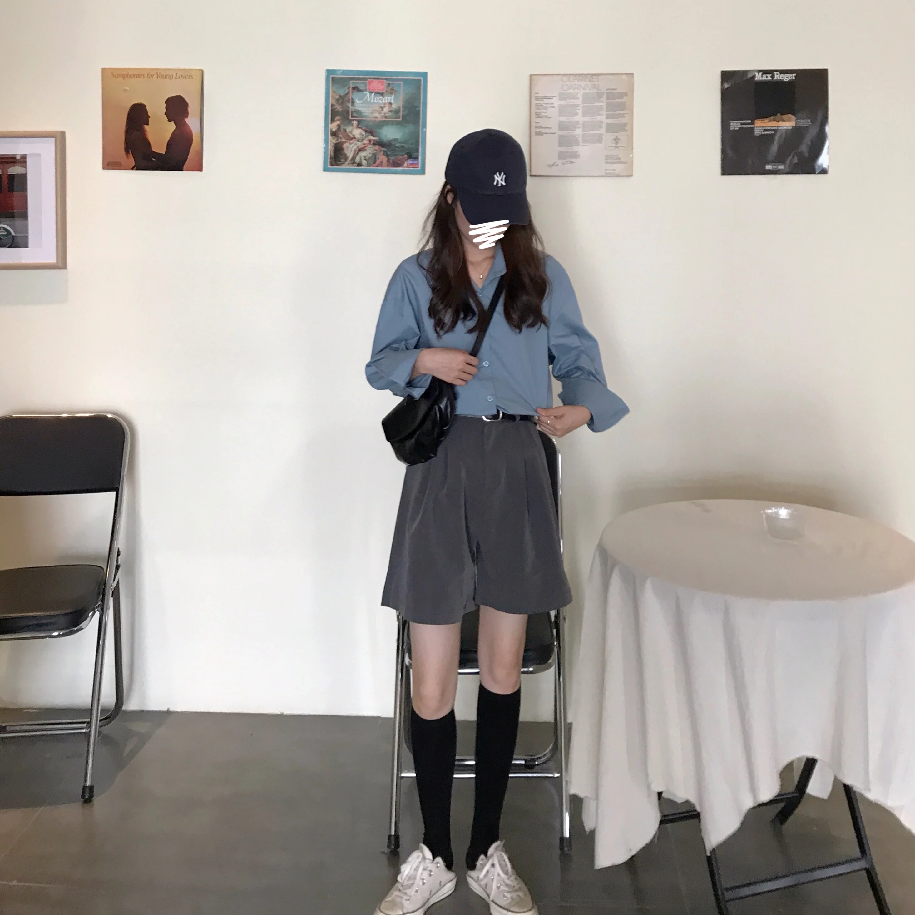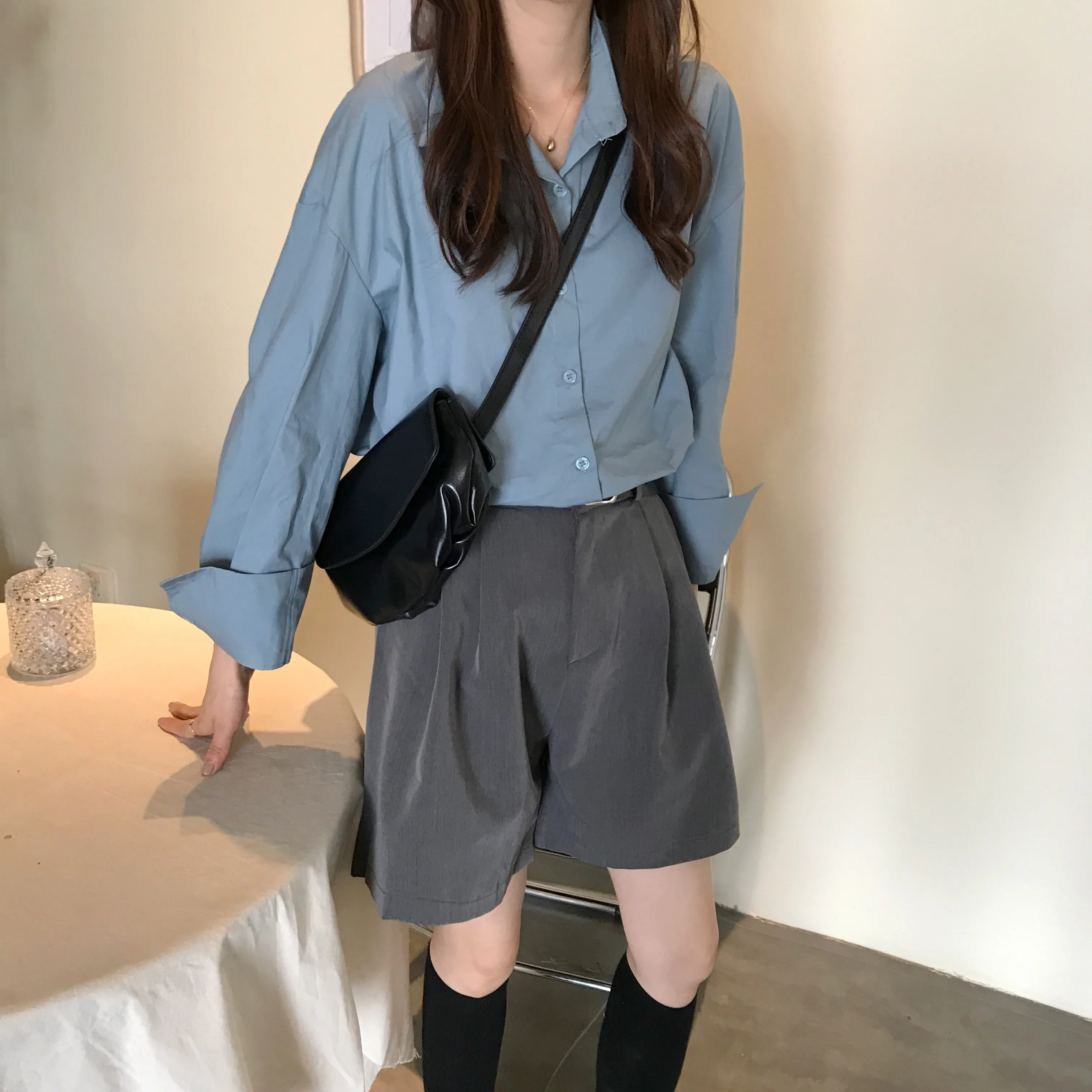 Женские короткие штаны, серые однотонные, с высокой талией, широкие, в стиле бойфренда, летние