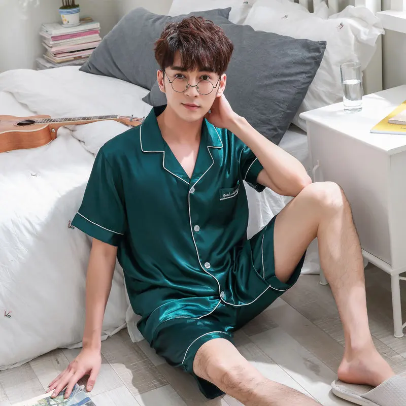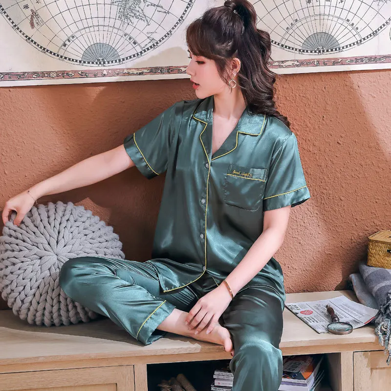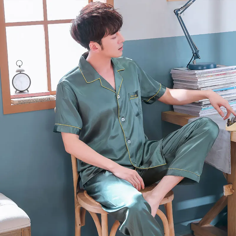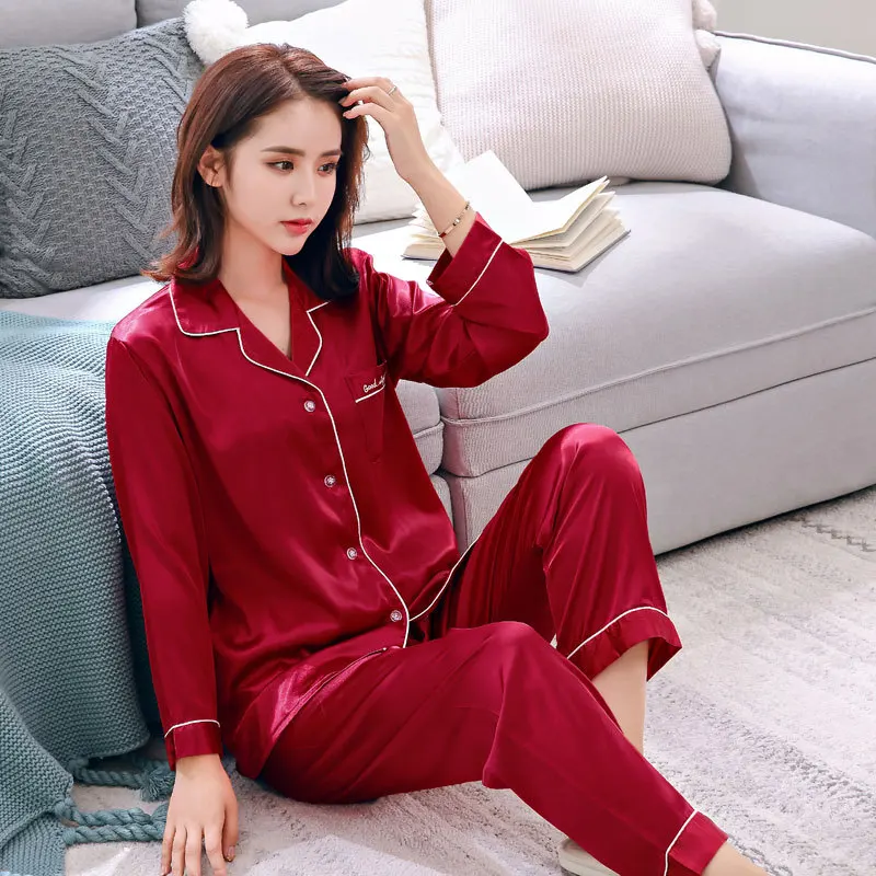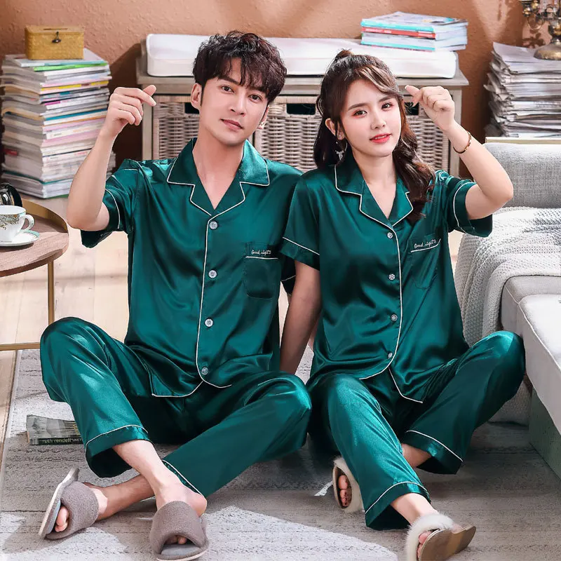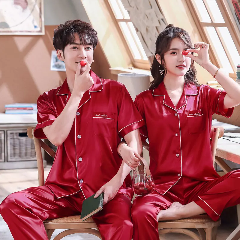 Шелковый Атласный пижамный комплект для женщин и мужчин, одежда для сна с длинным рукавом, пижамный комплект, домашняя одежда