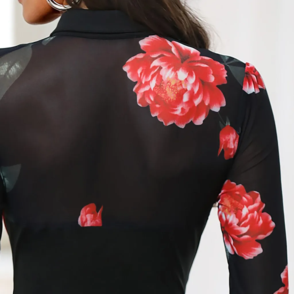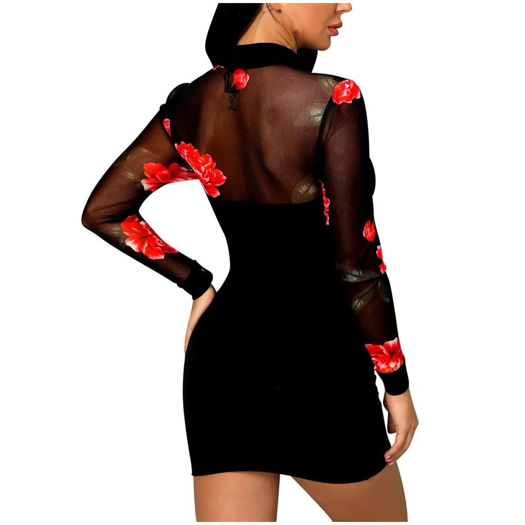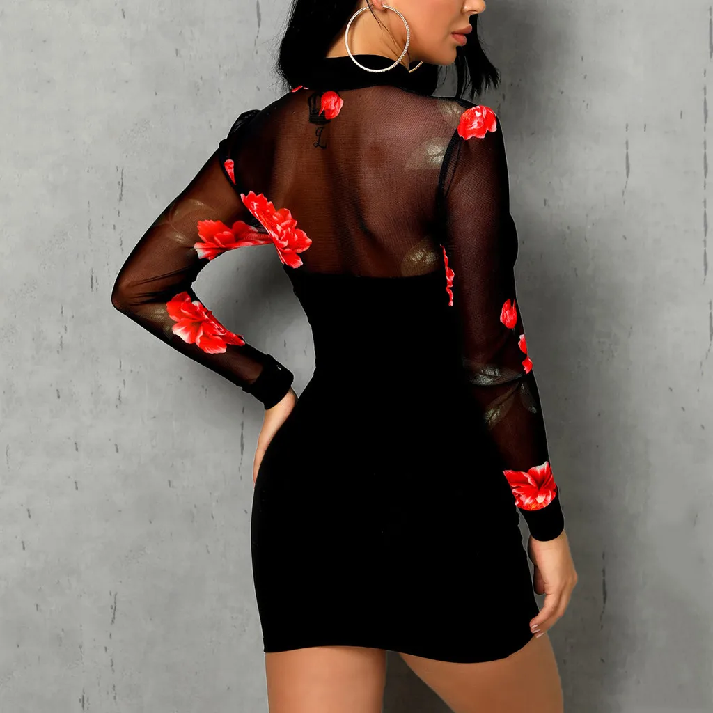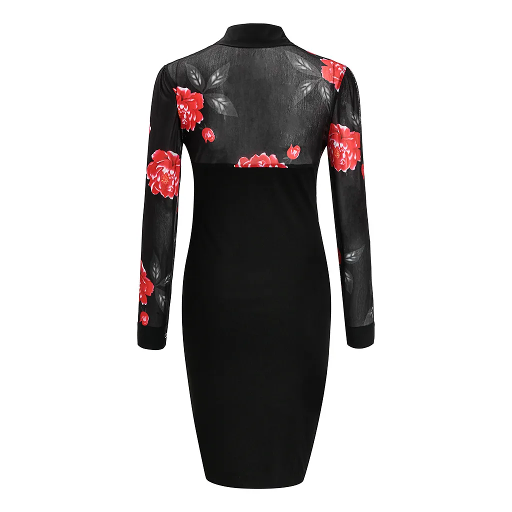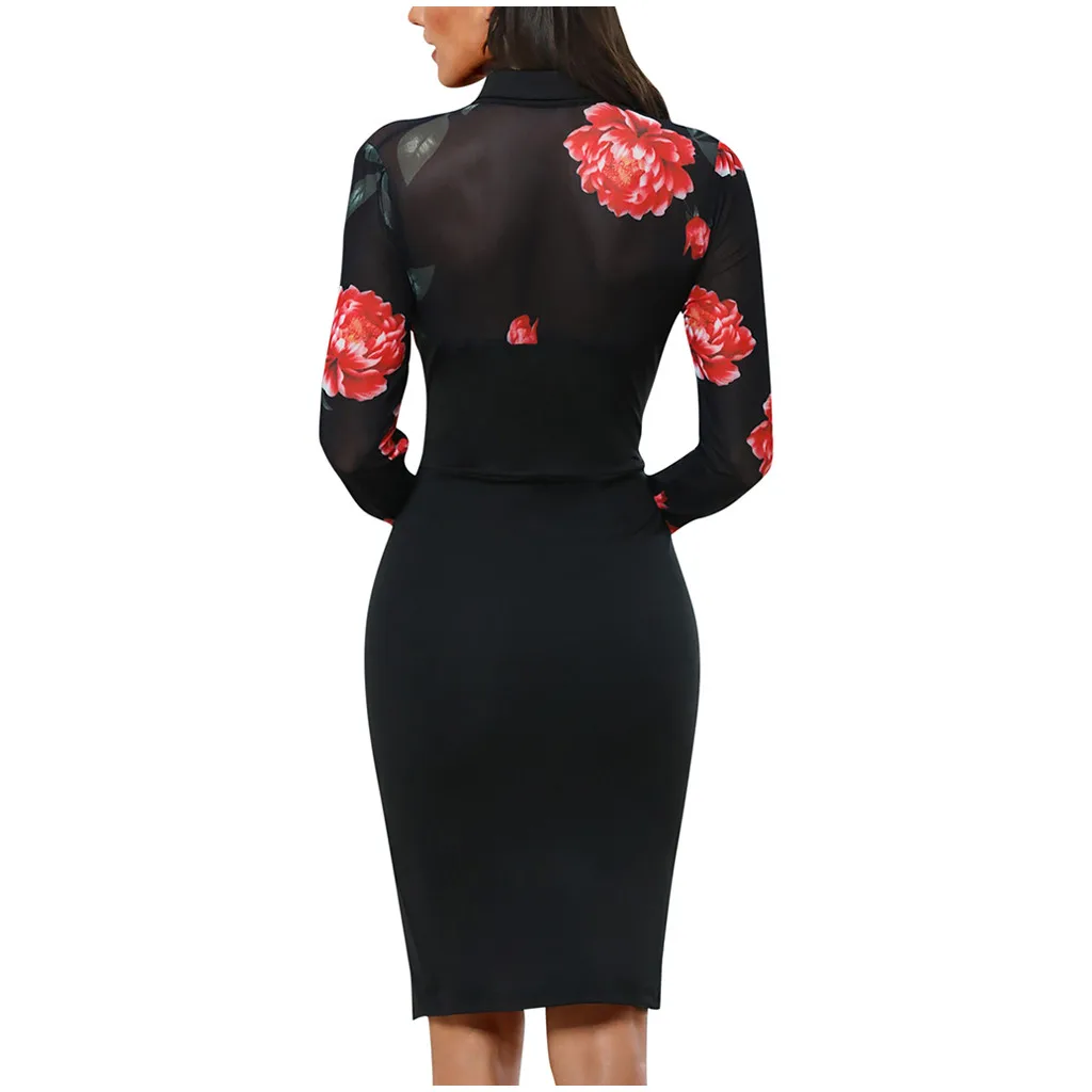 Модное женское Повседневное платье с длинным рукавом и цветочным принтом