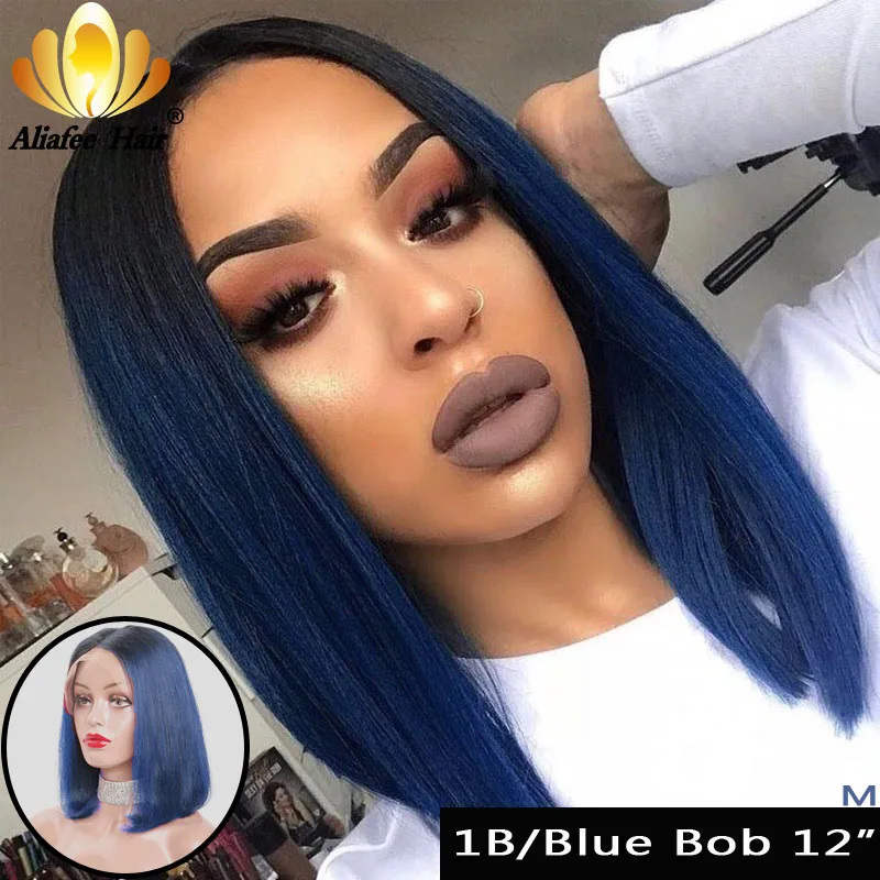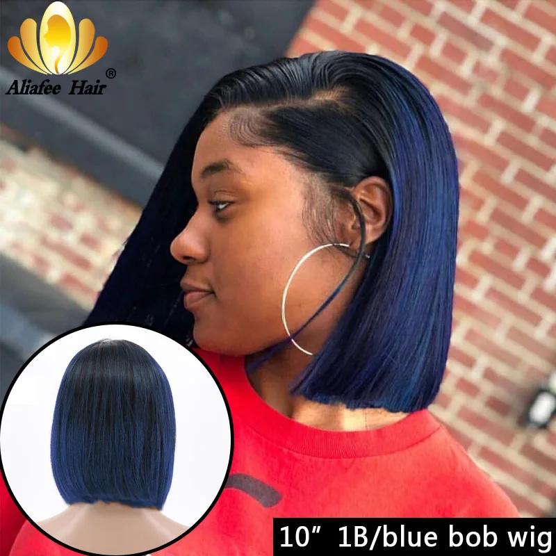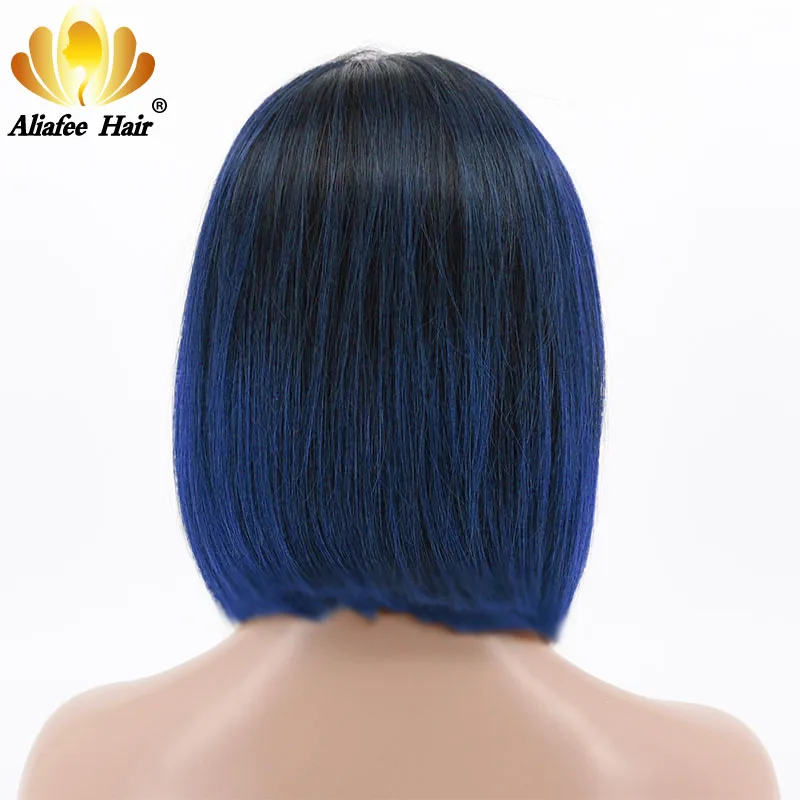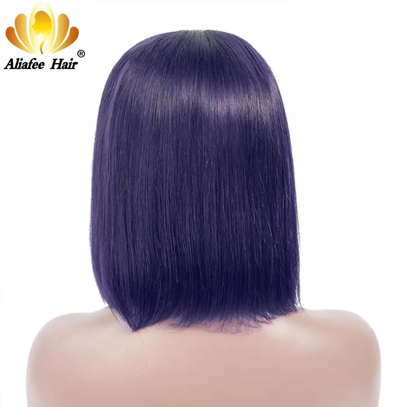 Парик Aliafee из 150% натуральных волос, темно-фиолетового и синего цвета, с короткой стрижкой