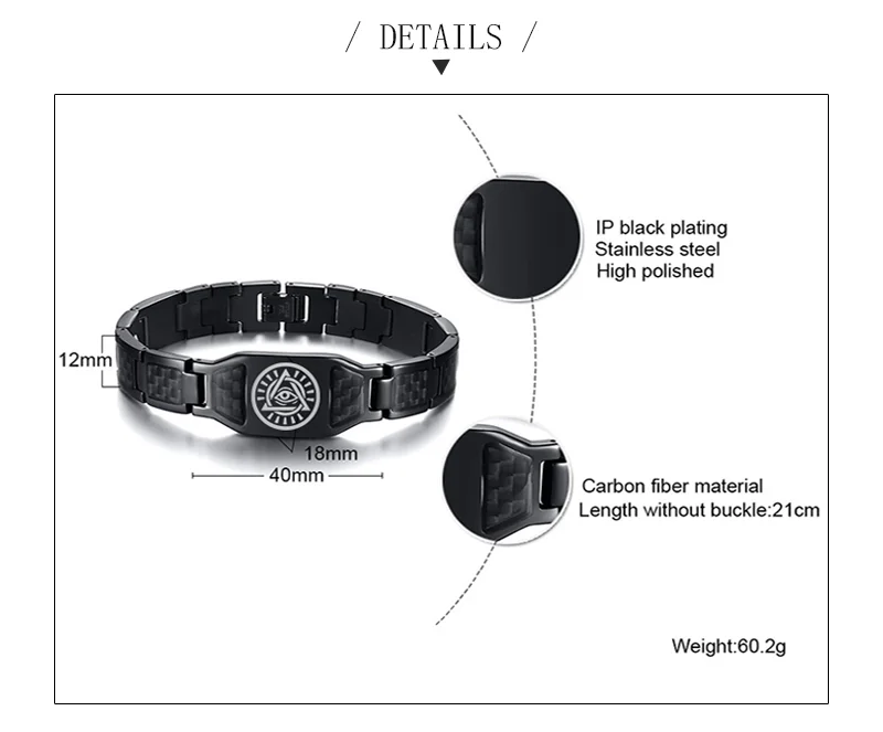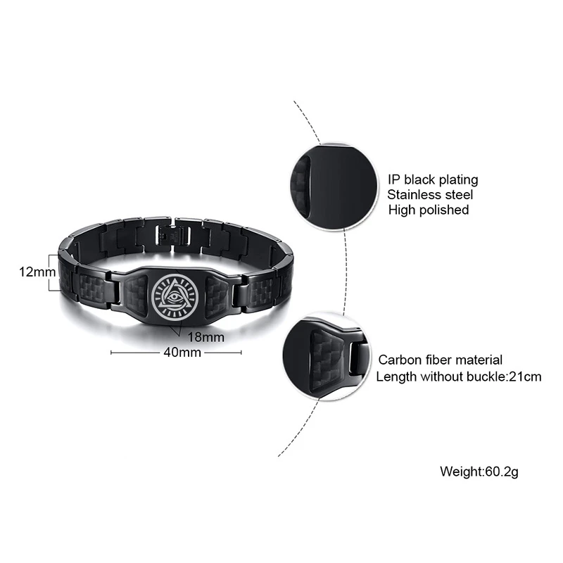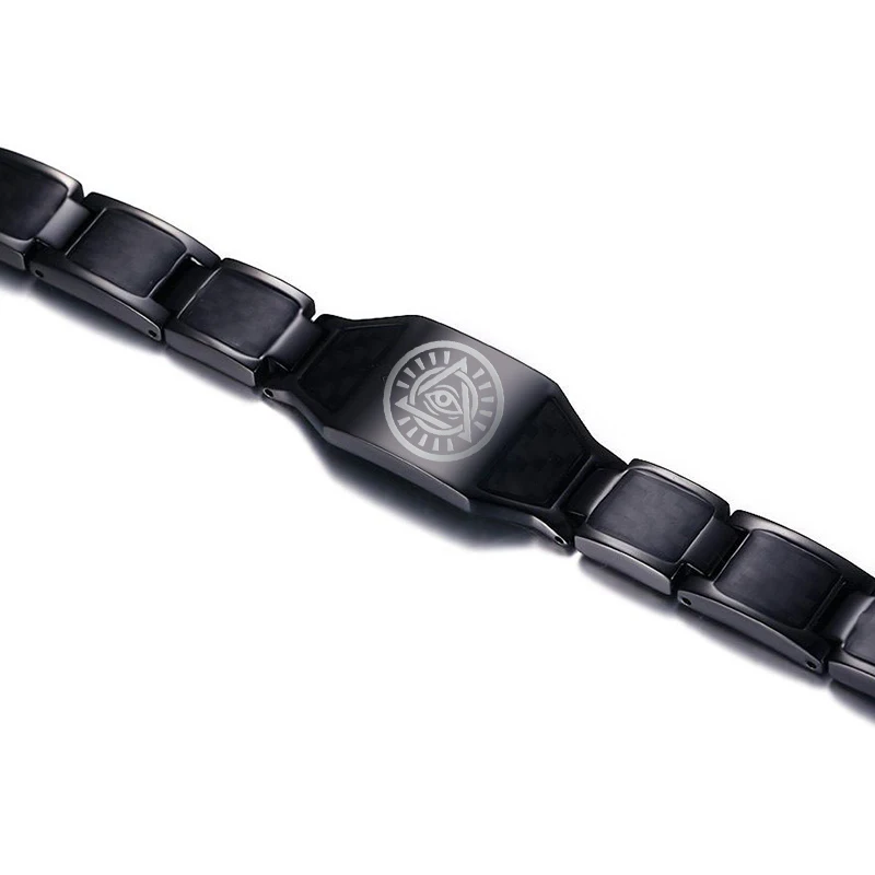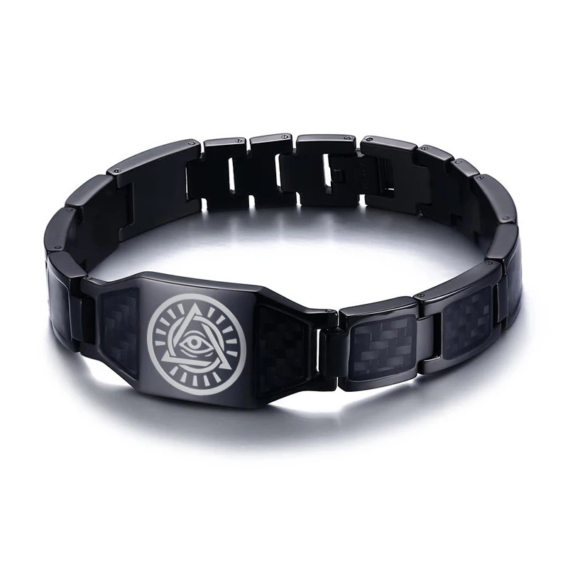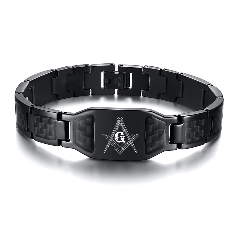 Мужской браслет из черного твердого волокна, браслет из нержавеющей стали, символ масонов