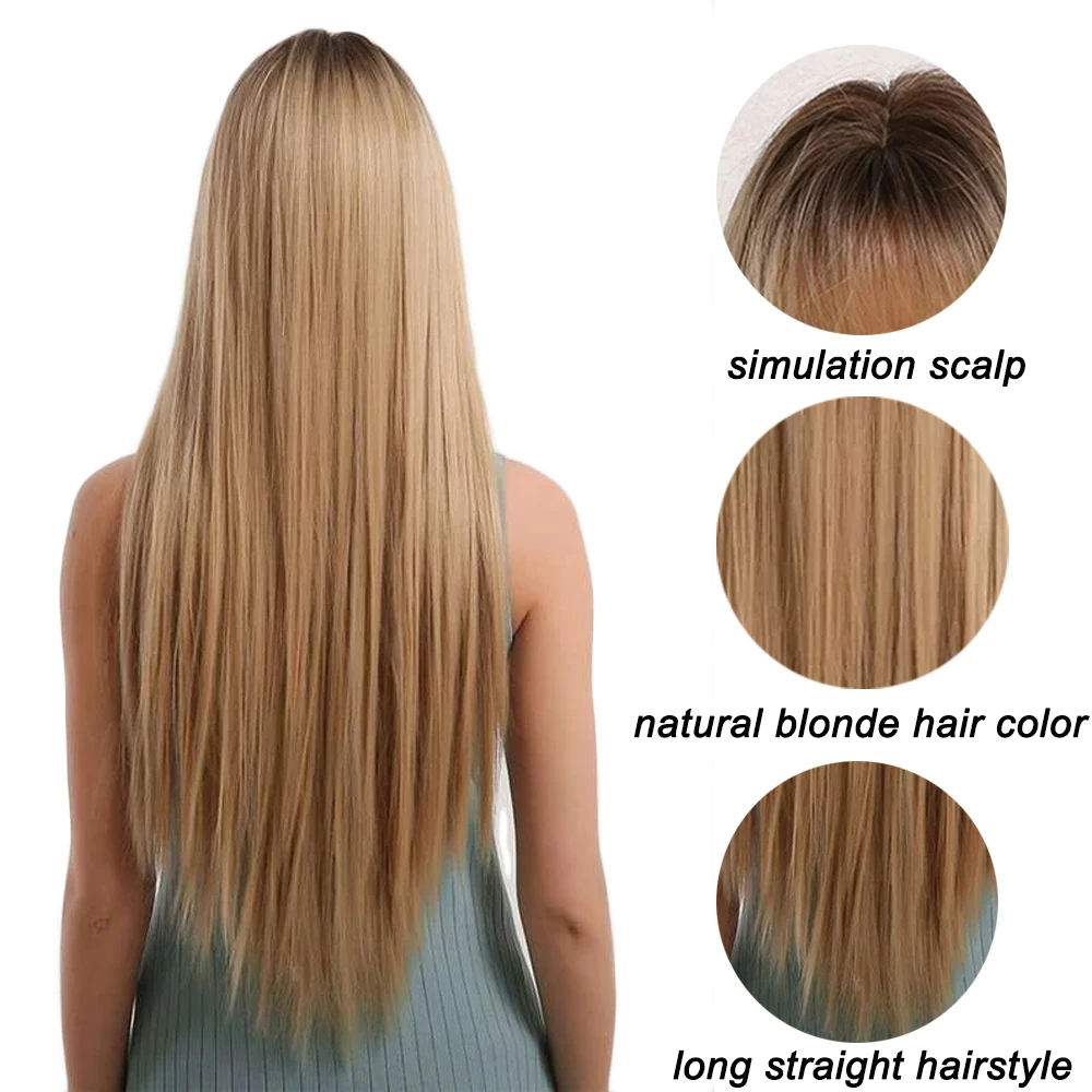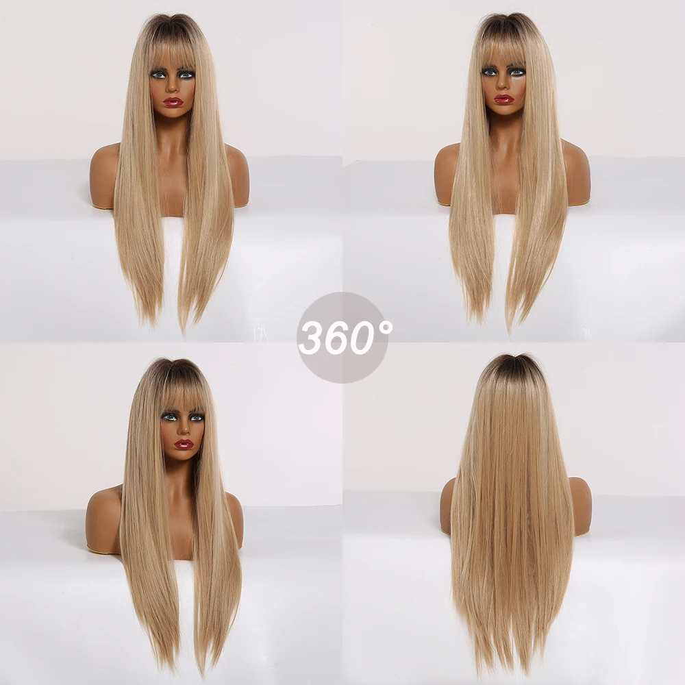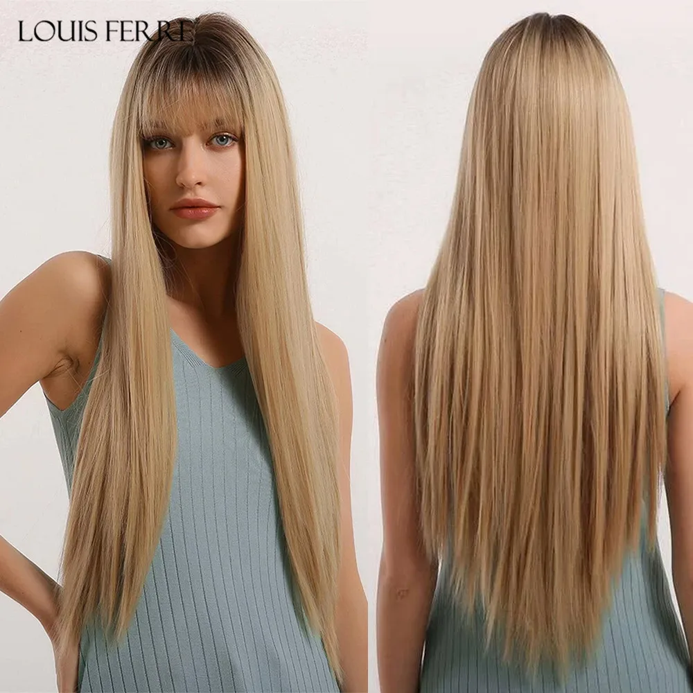 Парик LOUIS FERRE Омбре черный коричневый золотой синтетические парики с челкой длинный шелковый прямой парик для косплея для женщин Термостойкое волокно