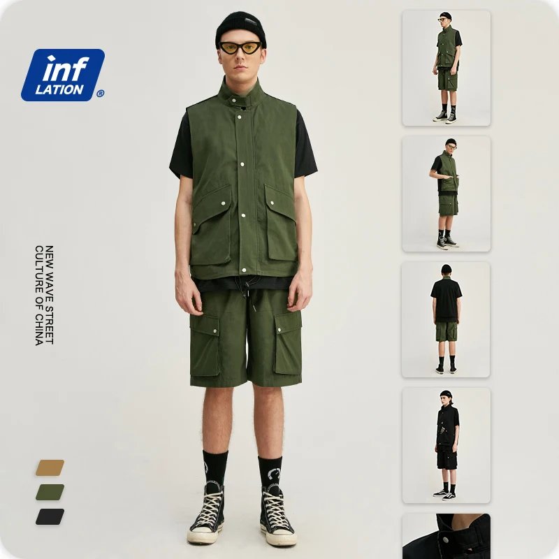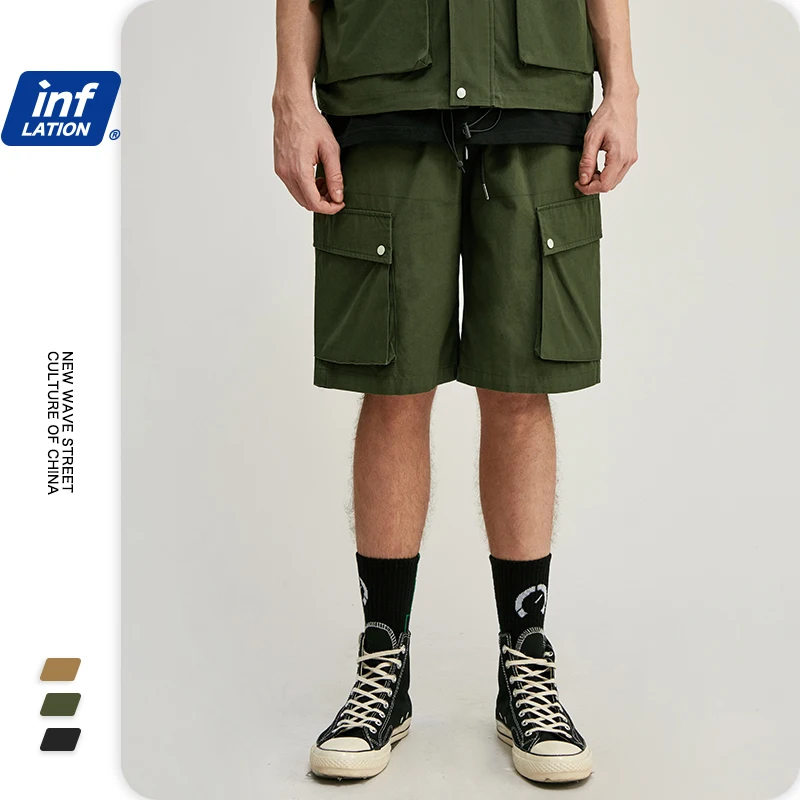 Мужской спортивный костюм с карманами INFLATION, черные, зеленые Компрессионные шорты с эластичной талией, уличная одежда, 2019