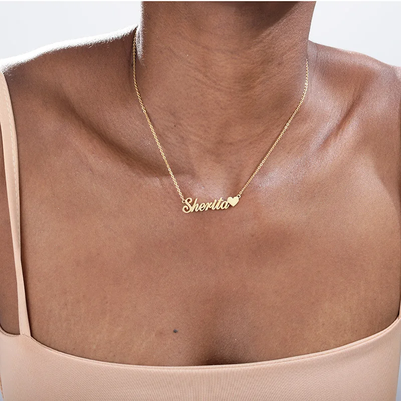 Ожерелье под заказ женское с кулоном в форме сердца, цепочка из нержавеющей стали под золото с именем, чокер, ювелирное изделие, Прямая поставка