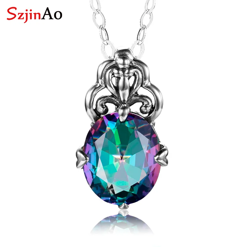 Подвеска Szjinao С Мистик-топазом, серебро 925 пробы, ювелирные изделия ручной работы, драгоценный камень, Радужный топаз, винтажные известные Брендовые женские аксессуары на весну