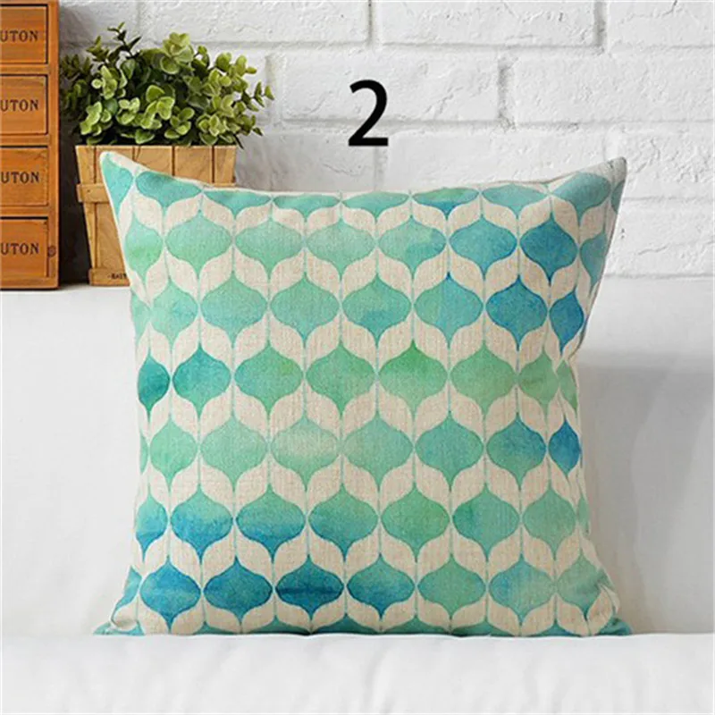 Геометрические синие волнистые домашние Чехлы для подушек, искусственное мягкое сиденье для автомобиля, льняные мятно-зеленые свежие алмазные подушки