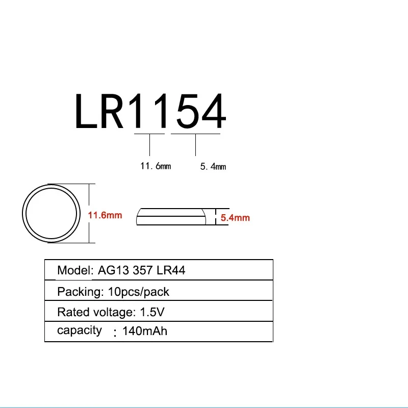 10 шт., батарейки AG13 LR44 LR1154 SR44 A76 357A 303 357 LR44W, кно...