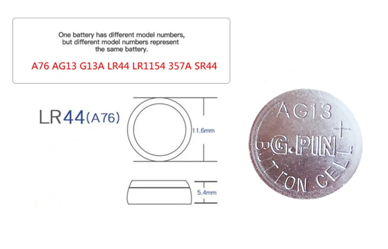 Щелочные батарейки LR44, 100 в, AG13, 76A, G13, G13A, D76A, PX76A, ...