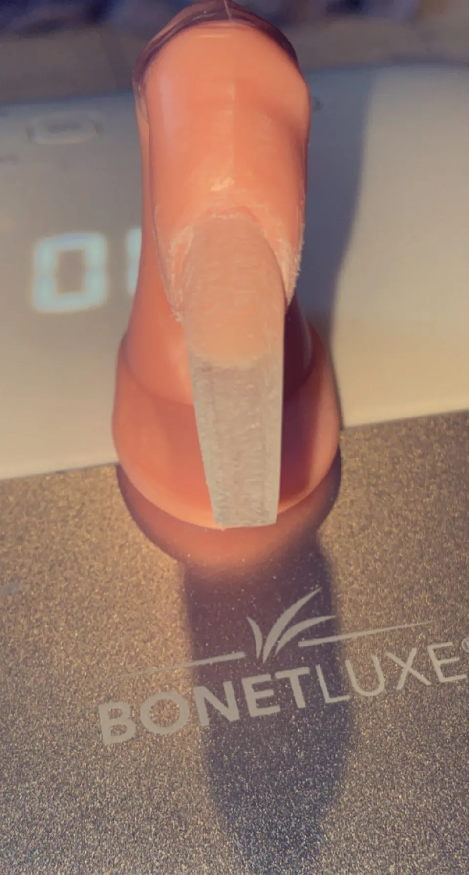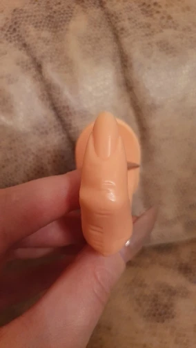 палец не зашел не цепляется штука для наращивания да и на пластике не оч держится слетает - у меня были отлеплены все бумажки на которые нужно крепить палец -был немного сломан,и на месте кутикулы тоже отколото