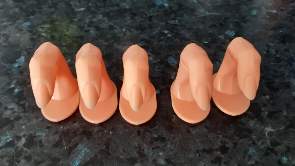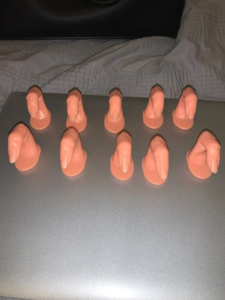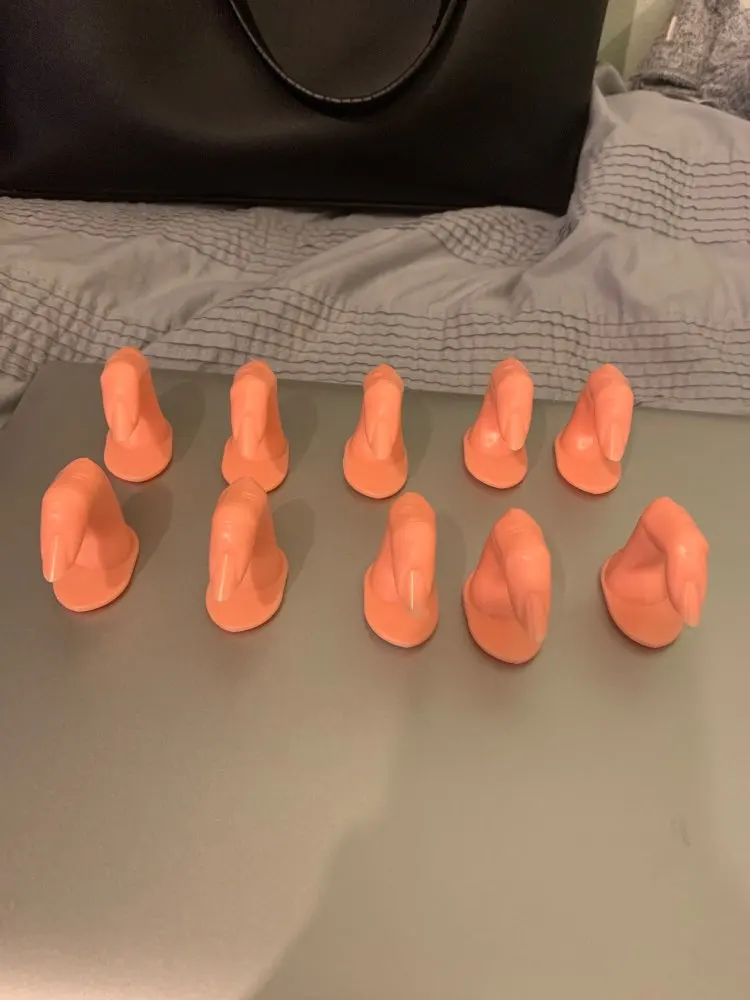 Некоторые пальцы выглядят немного потрясающе. Я немного ожидала разного типа материала или ощущения от пальцев. Я думал, что они будут немного похожи на силикон, но они очень жесткие. Они также очень маленькие, не уверен, смогу ли я использовать их для своих ногтей.