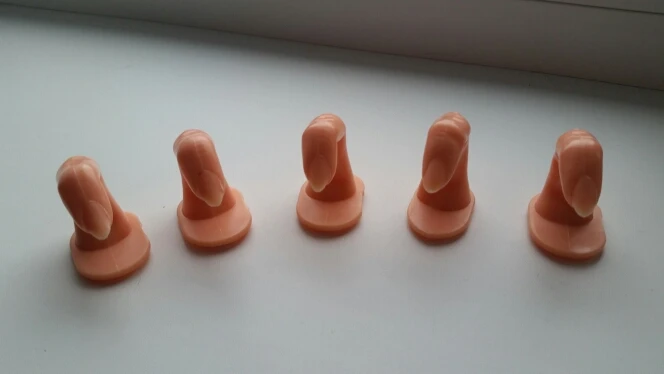 Как по мне, так этот палец - это полная хрень. Невозможно нормально подставить форму под него, он очень маленький, такой как мой мезимец. Мне было не удобно наращивать на нем. Очень маленький и узкий. Лучше уже на модели учится наращивать и делать покрытие. Снимать с него тоже проблематично, потому что очень противной звук получается вовремя снятия.