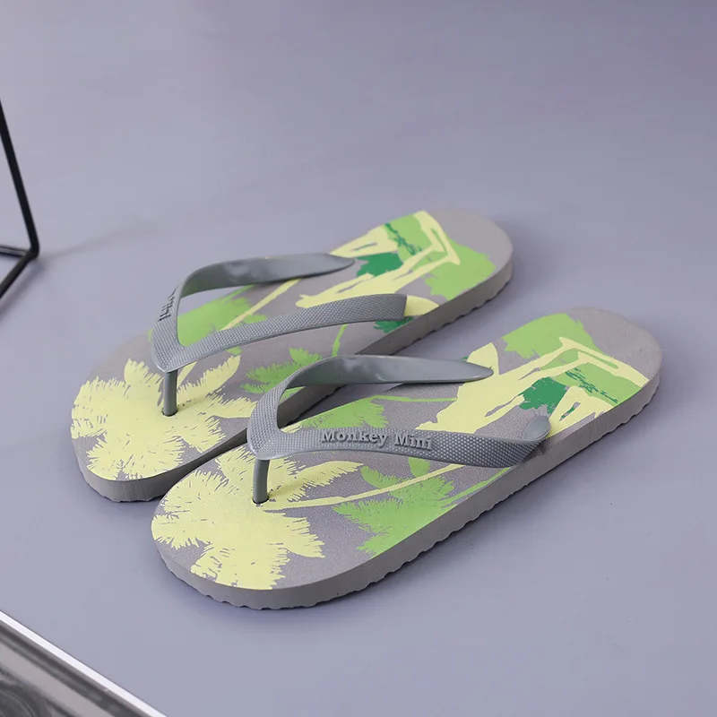 Шлепанцы мужские для пар, Нескользящие сандалии, мультяшное кокосовое дерево, пляжная обувь, летняя модель