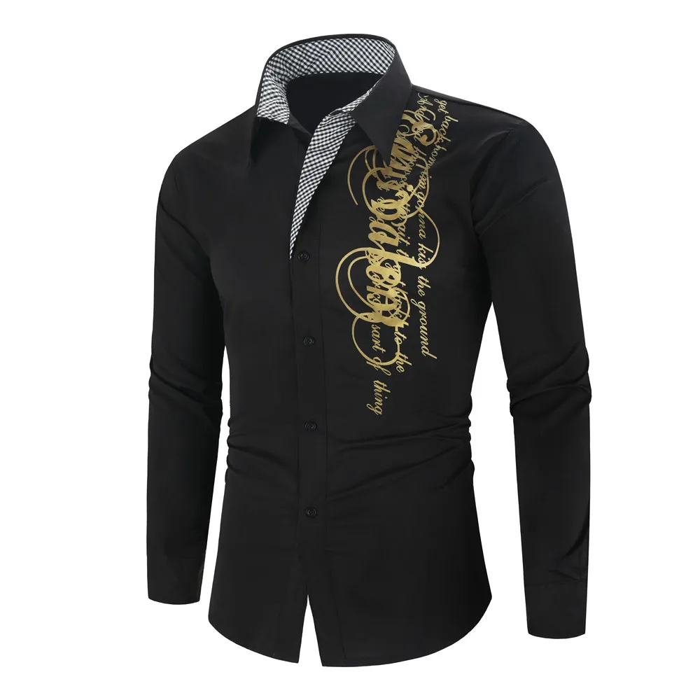 Рубашка мужская приталенная с длинным рукавом, люксовая Клубная, для выпускного вечера, с золотым принтом, размеры 3x l-m, 2020