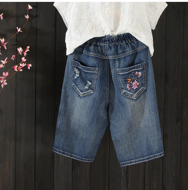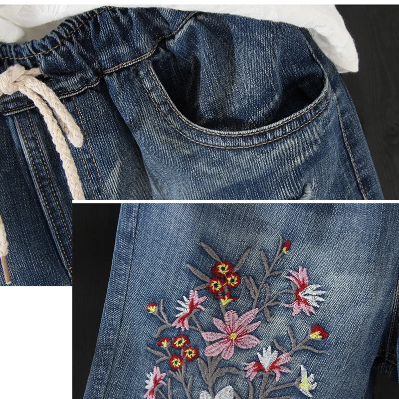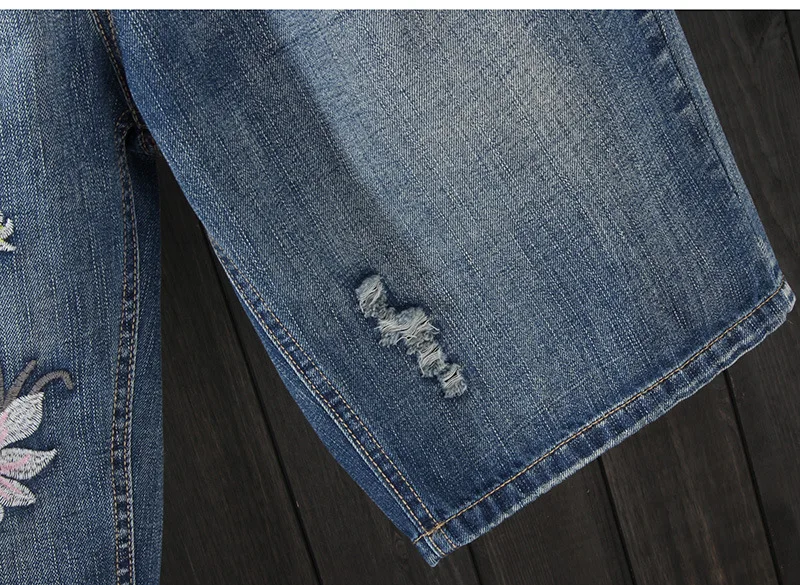 Летние тонкие женские джинсовые шорты с цветочной вышивкой, рваные женские пляжные Капри для отпуска, джинсовые шорты, брюки, женские джинсы
