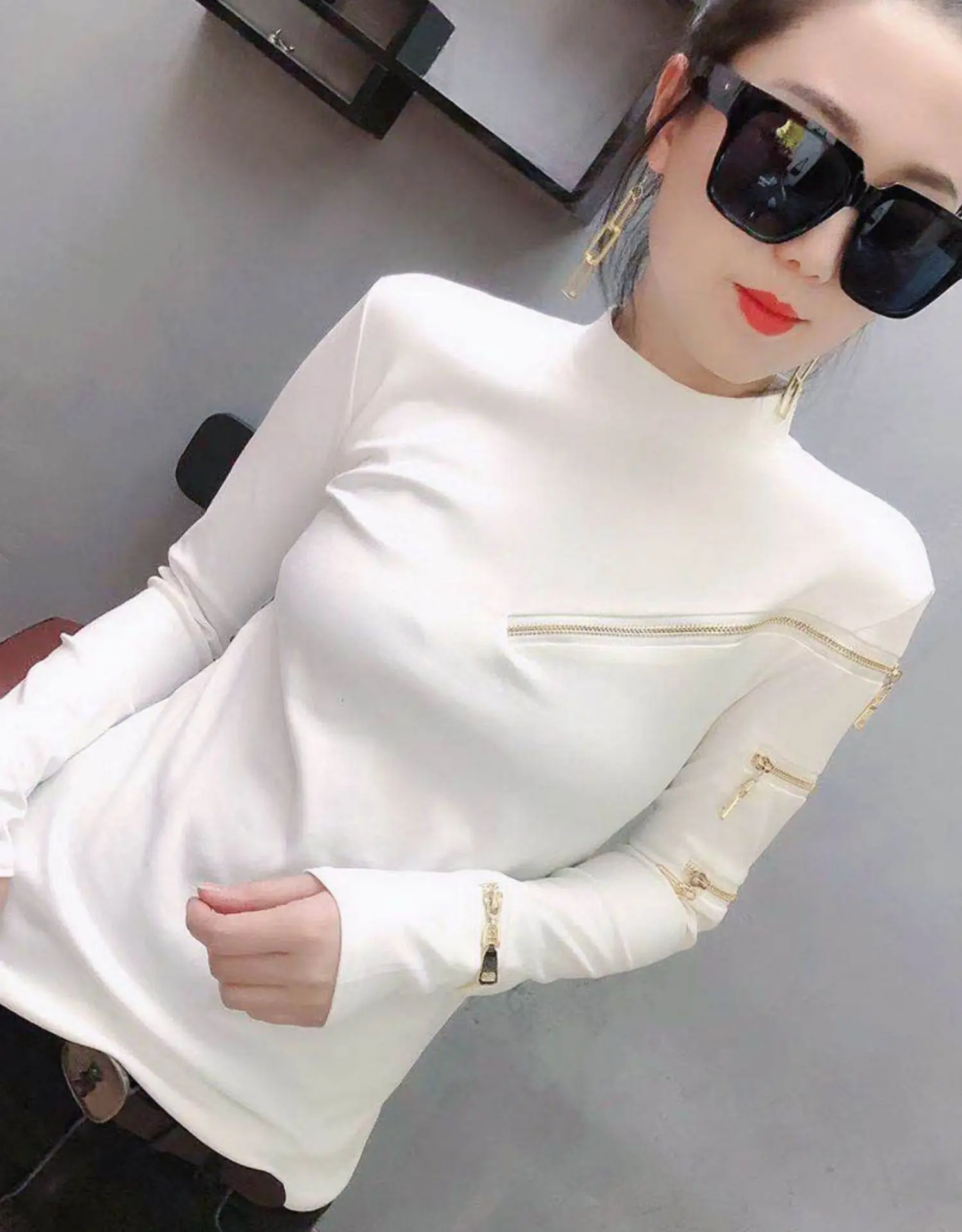 Женские футболки на молнии, хлопковые, стрейчевые, женские пуловеры на молнии Tps
