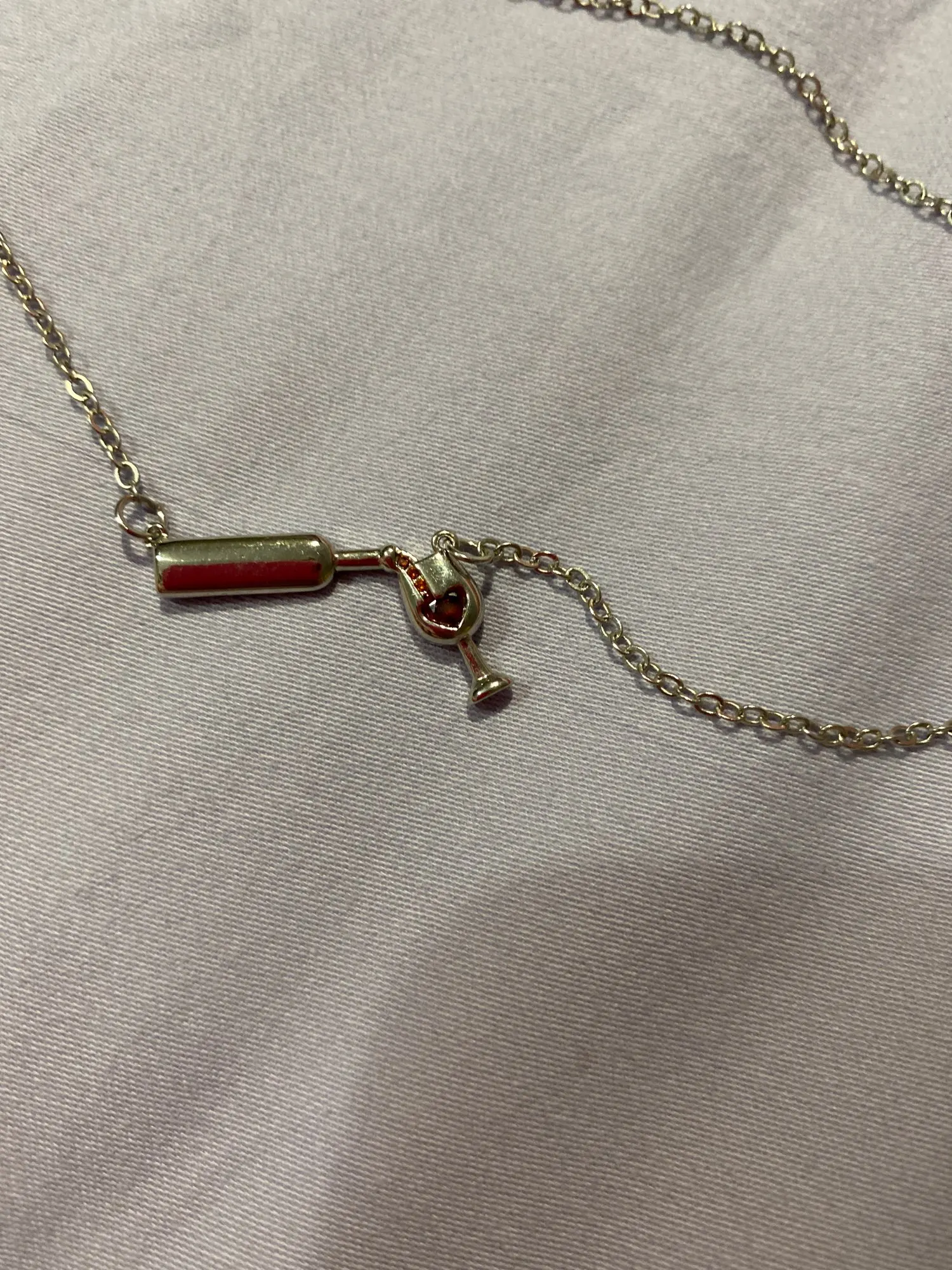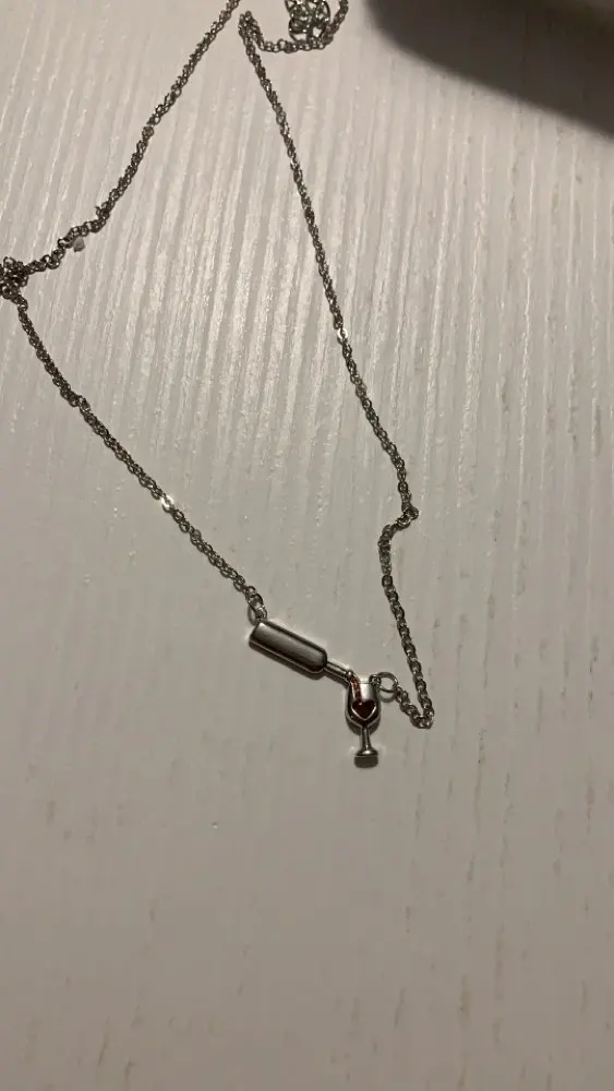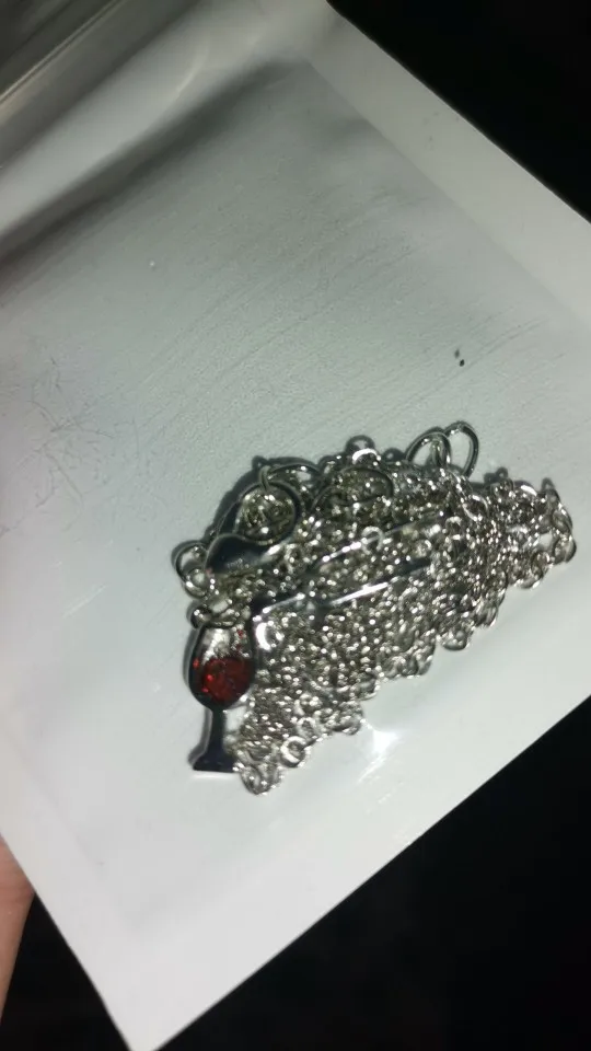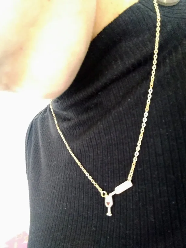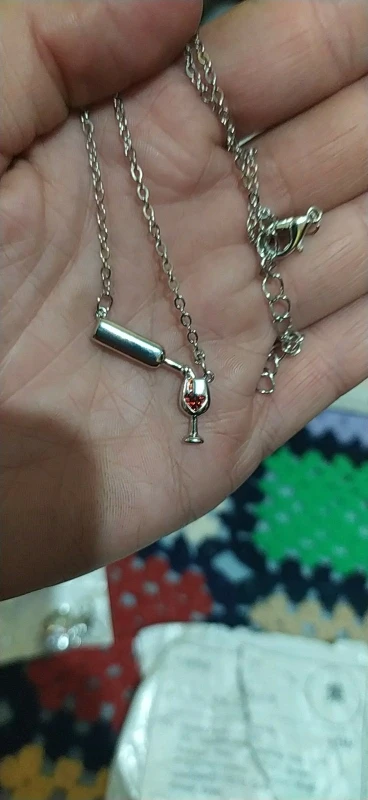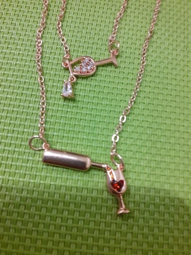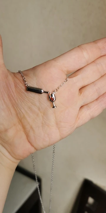 Очень красивая подвеска. Вино в бокале и льющееся вино — это стразики, не краска, уточняю это, т.к. у других продавцов видела именно с краской.