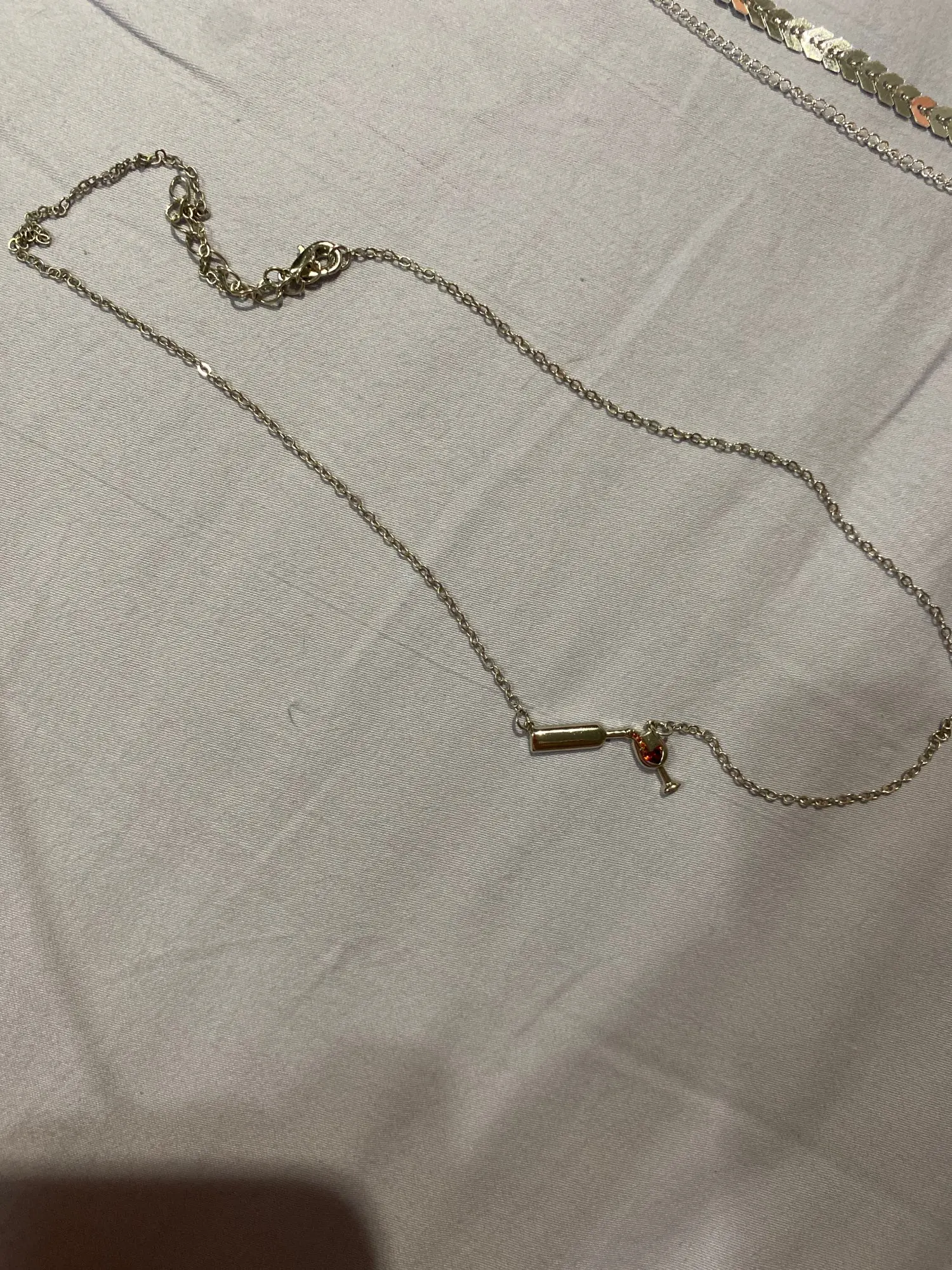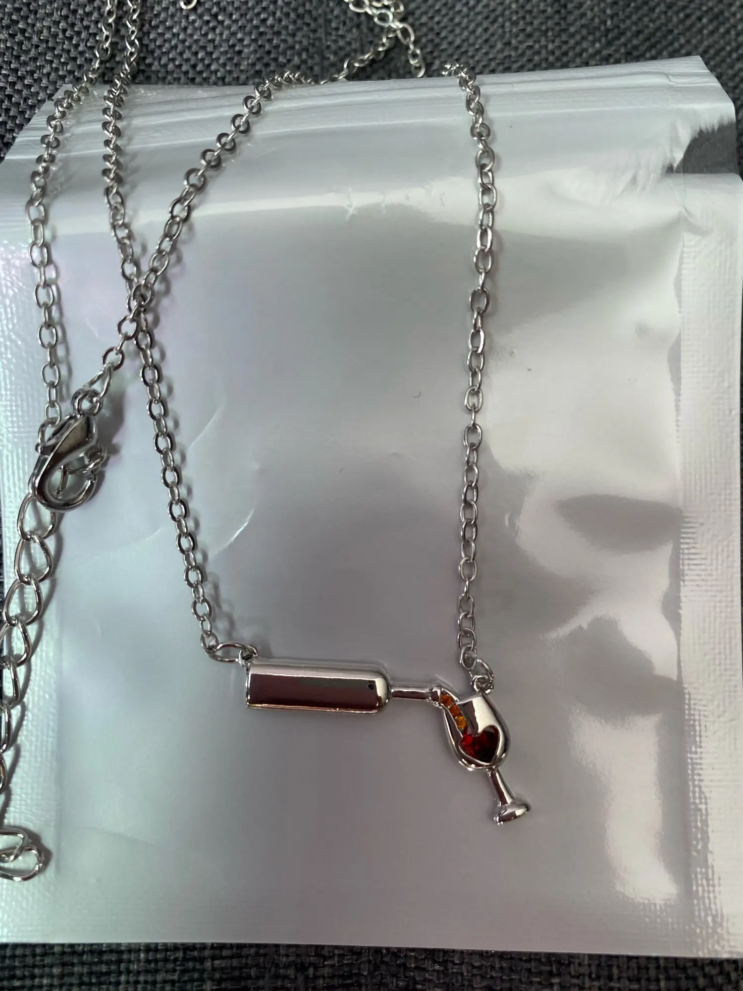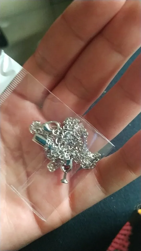 Очень красивая подвеска. Вино в бокале и льющееся вино — это стразики, не краска, уточняю это, т.к. у других продавцов видела именно с краской.