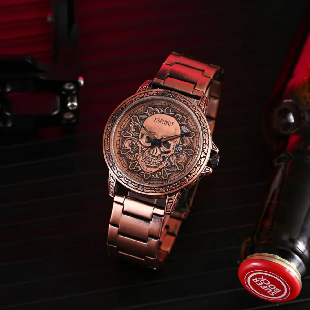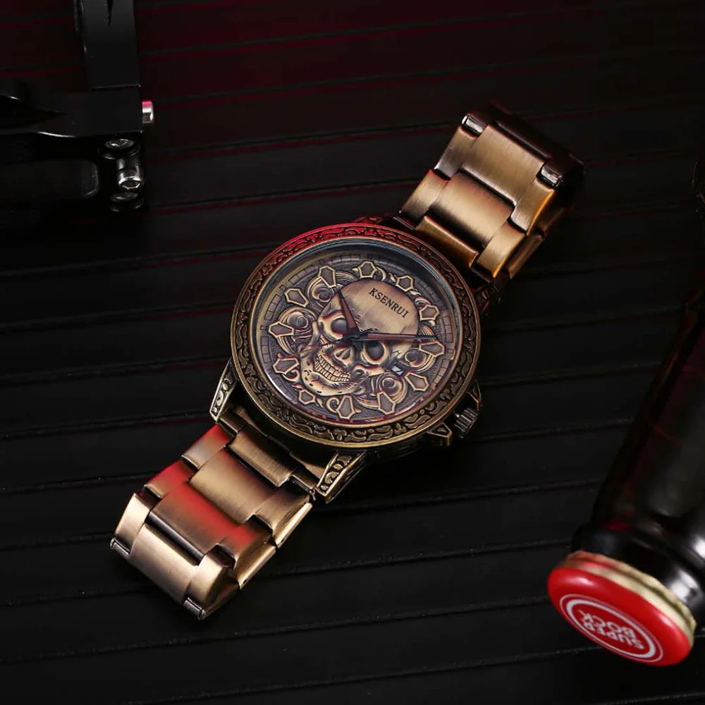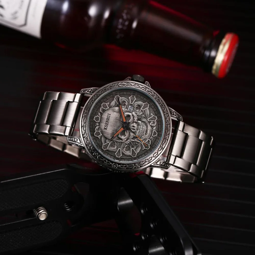 Мужские наручные часы KSENRUI, роскошные часы с черепом, из нержавеющей стали, водонепроницаемые