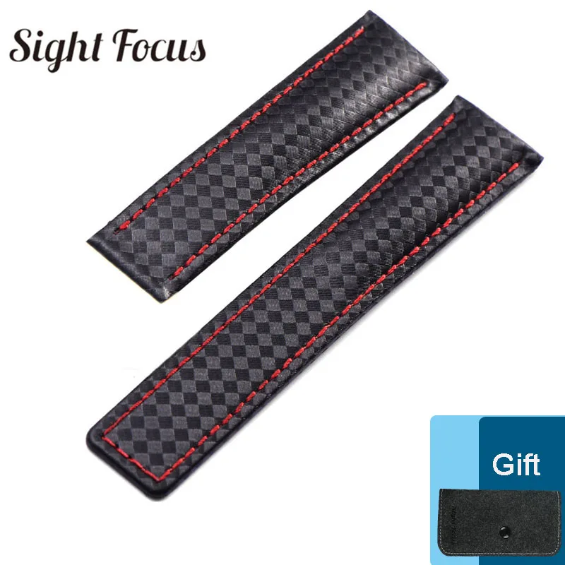 Ремешок из углеродного волокна для часов, 19 мм 20 мм 22 мм, с красной строчкой для часов Samsung Gear S3