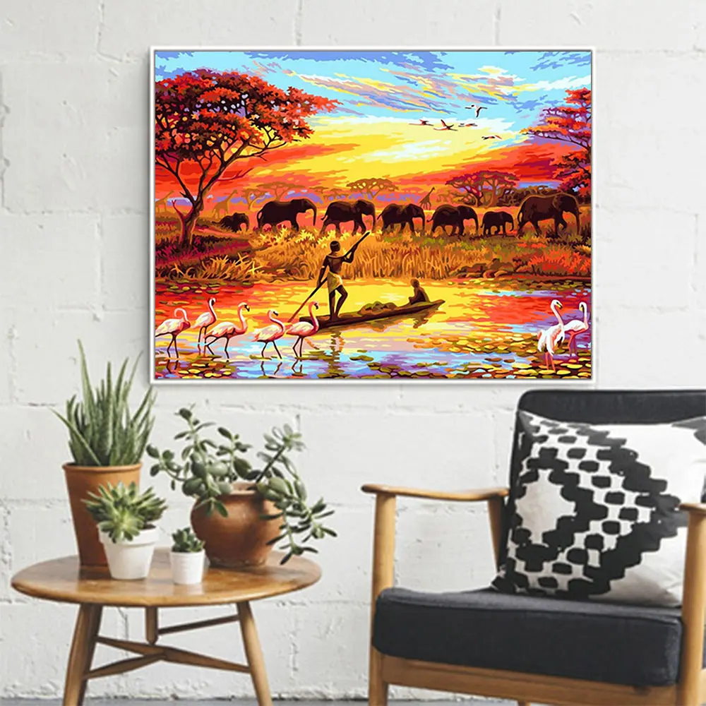 Африканские голые женщины и фламинго Алмазная Картина Портрет живот...