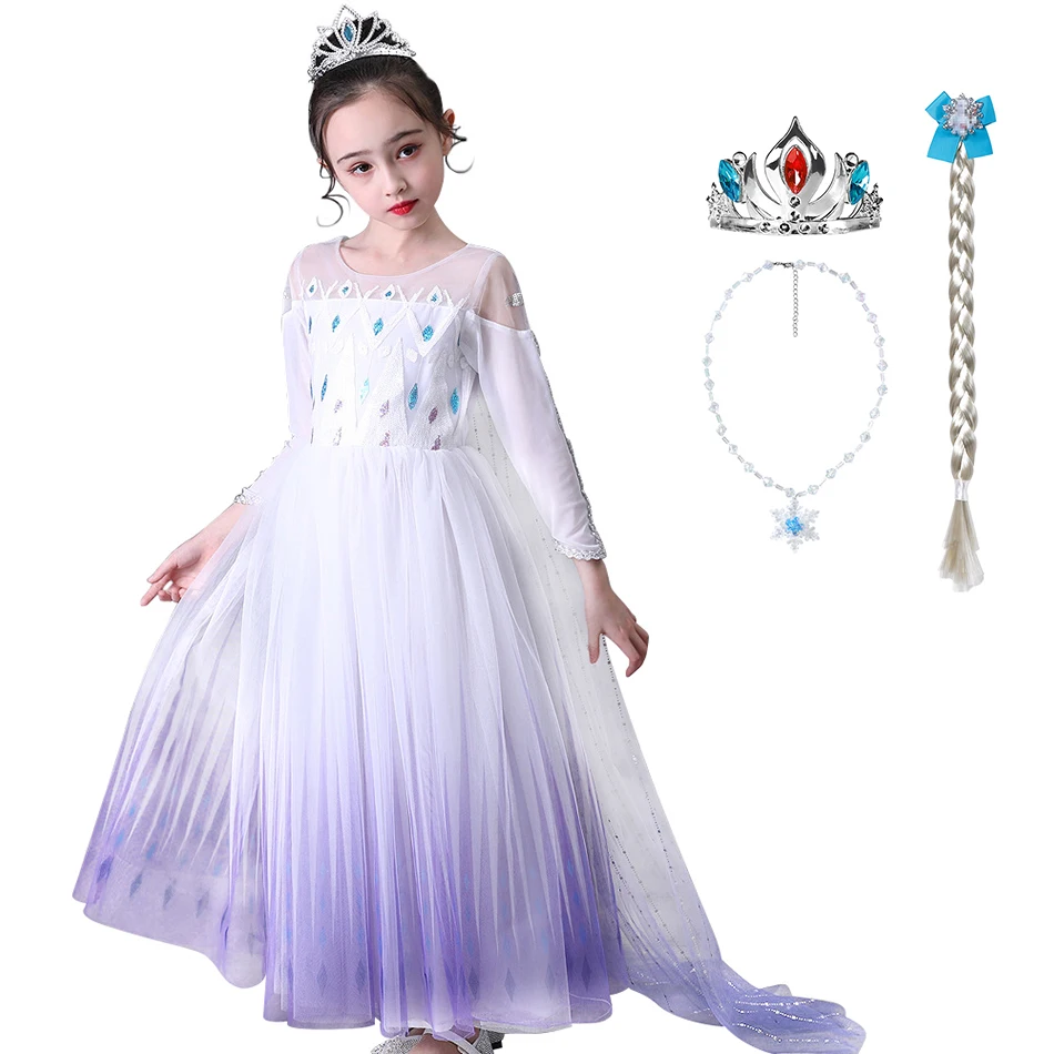 Нарядное платье для девочек Elza 2, детское платье с блестками на день рождения, Хэллоуин, костюм Снежной Королевы 2
