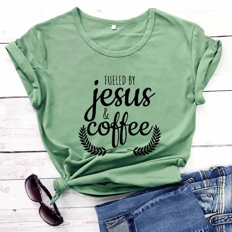 Новое поступление, летняя забавная женская футболка с принтом Иисуса и кофе, религиозная вера, Христианская молитва, подарок