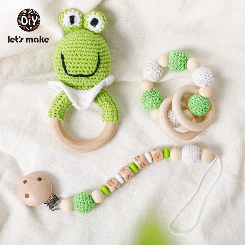 Цепочка-прорезыватель для зубов, с именем лягушки