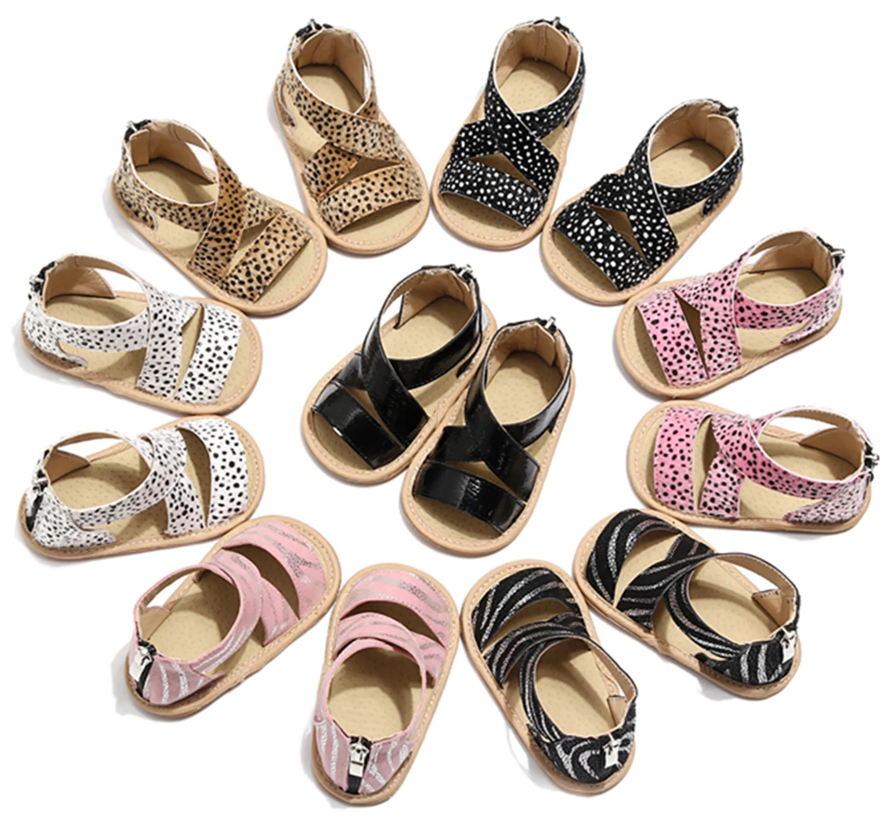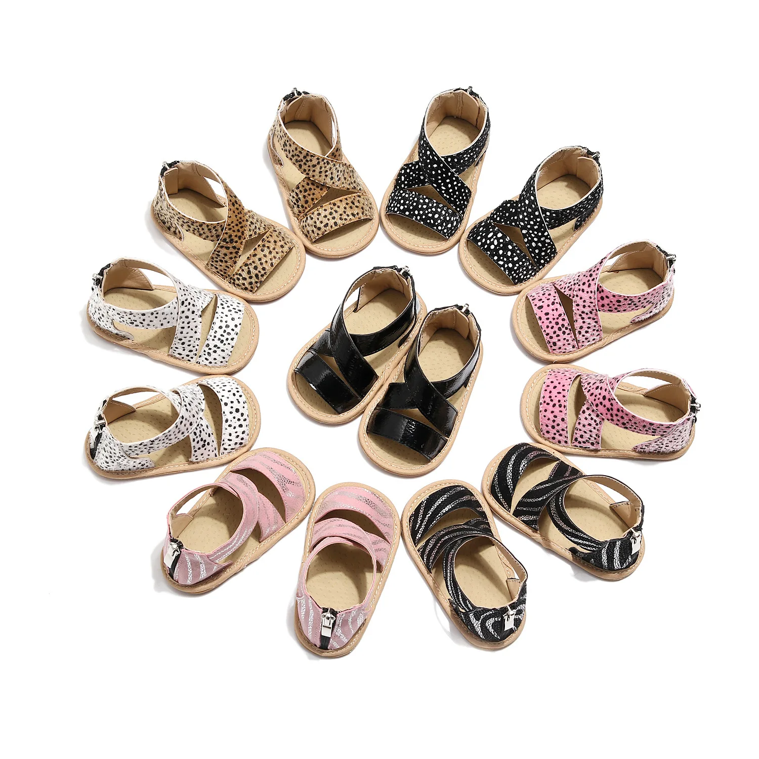Босоножки Детские в европейском и американском стиле, популярные сандалии с леопардовым принтом, мягкие детские мокасины для первых шагов