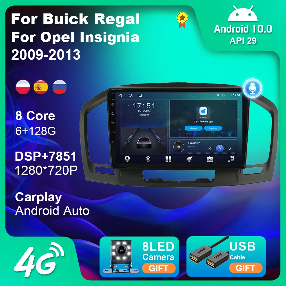 Автомагнитола для Buick Regal Opel Insignia 2009-2013 Android 10, автомагнитола, мультимедийный Стерео GPS-навигатор, аудио, 2din DVD-плеер