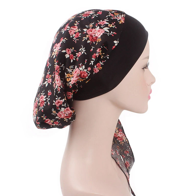 Шапка-тюрбан женская с цветочным принтом, внутренние хиджабы, мусульманский головной платок, готовая к носке