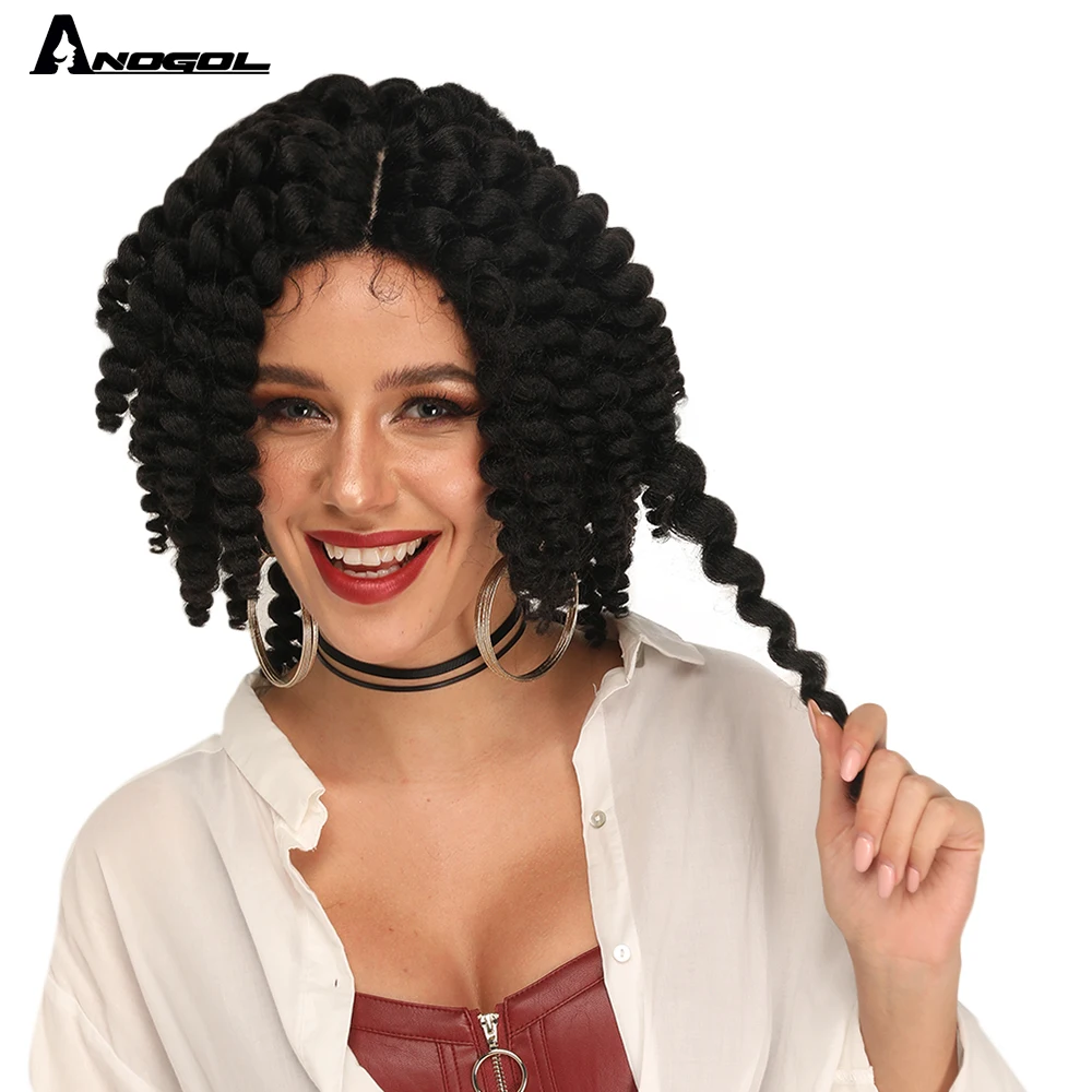ANOGOL бренд новый стиль короткий кудрявый Futura волокно черный синтетический кружевной передний парик с детскими волосами Уникальный для женщин