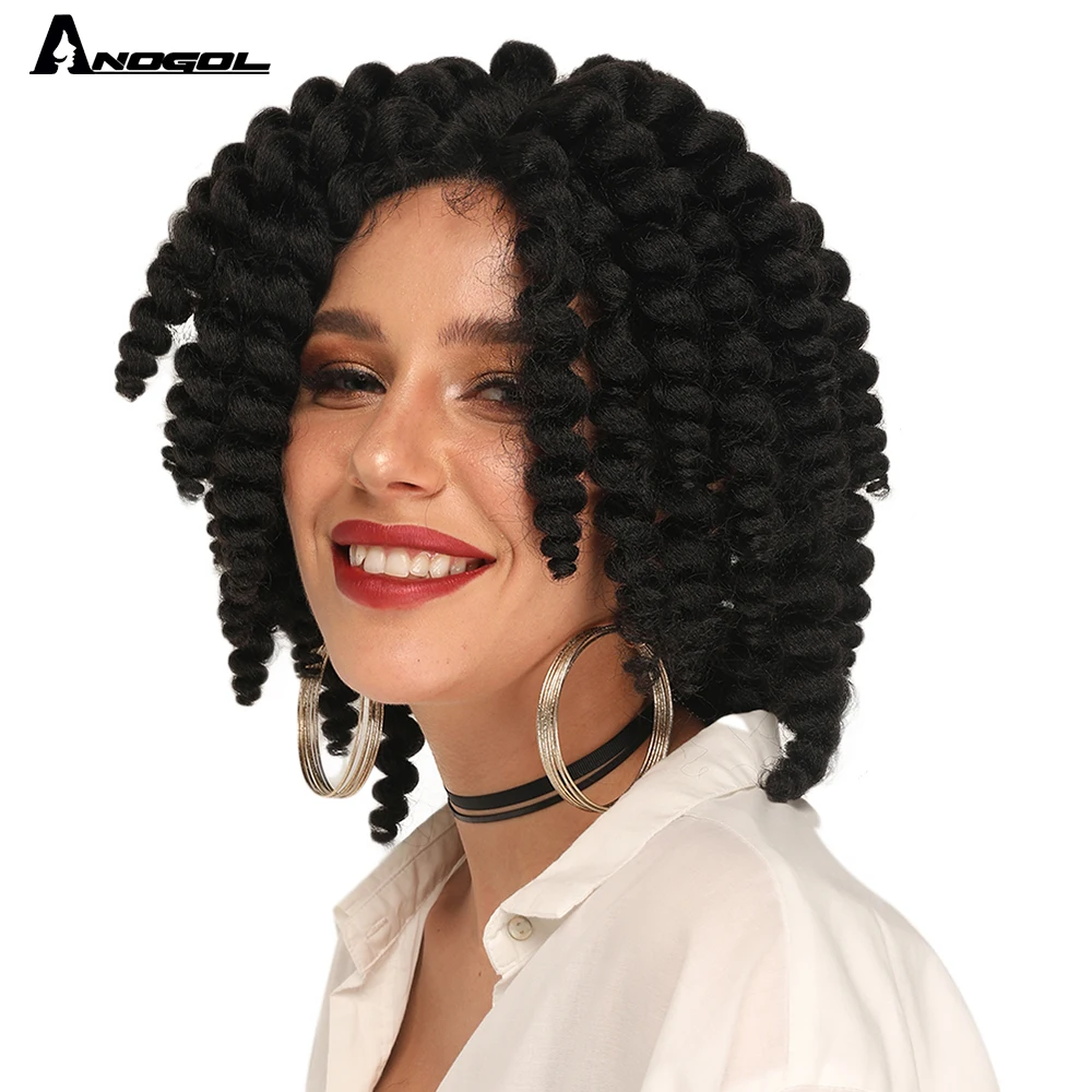 Парик ANOGOL Женский, короткий, кудрявый, черного цвета