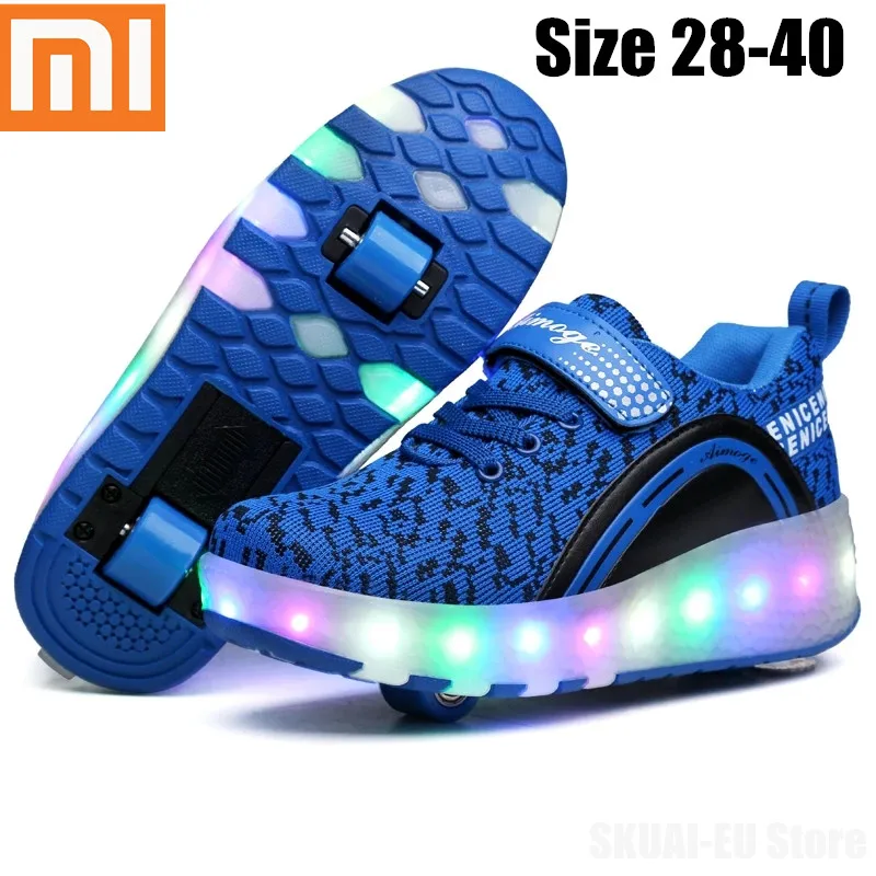 Детские светящиеся кроссовки Xiaomi на двух колесах, светодиодная обувь для роликовых коньков, обувь с подсветкой для мальчиков и девочек