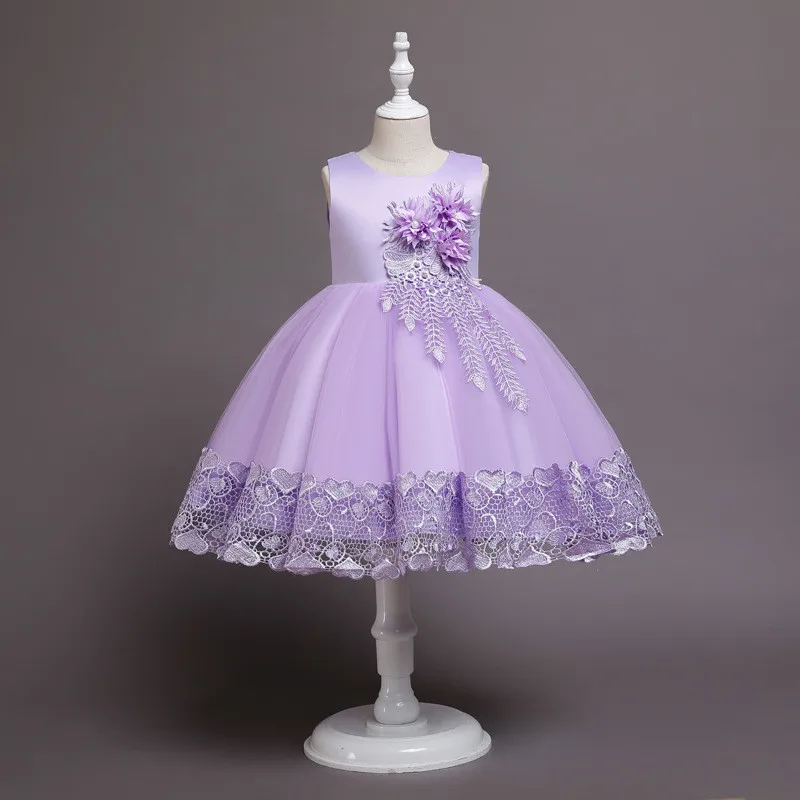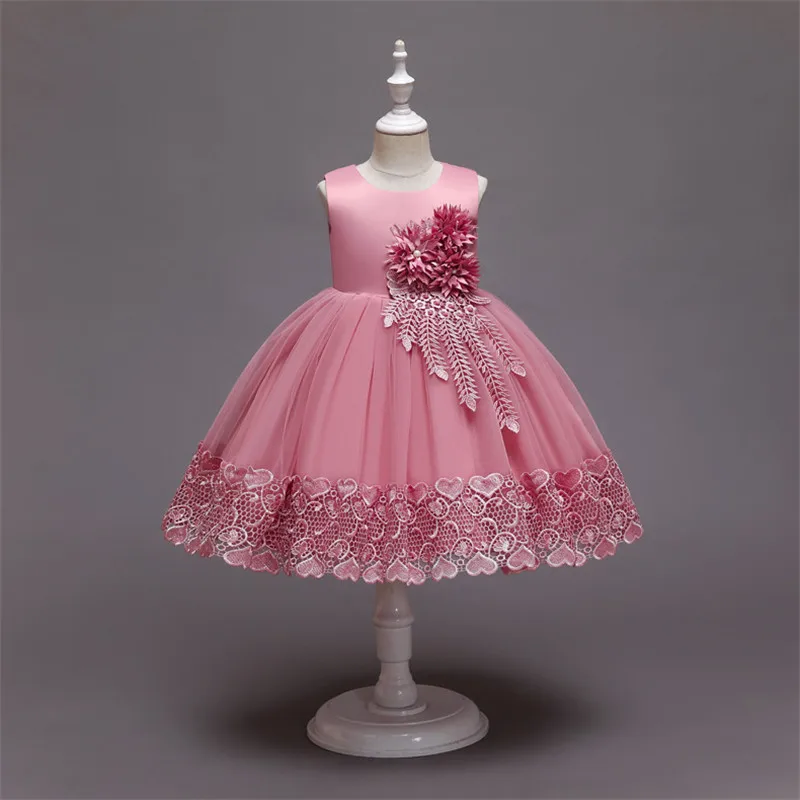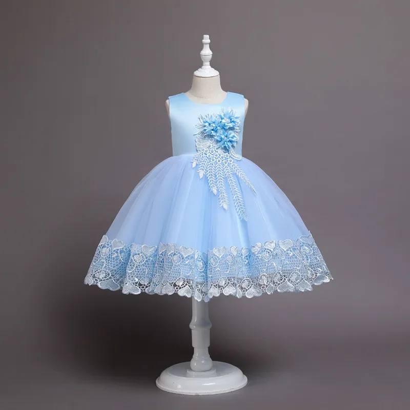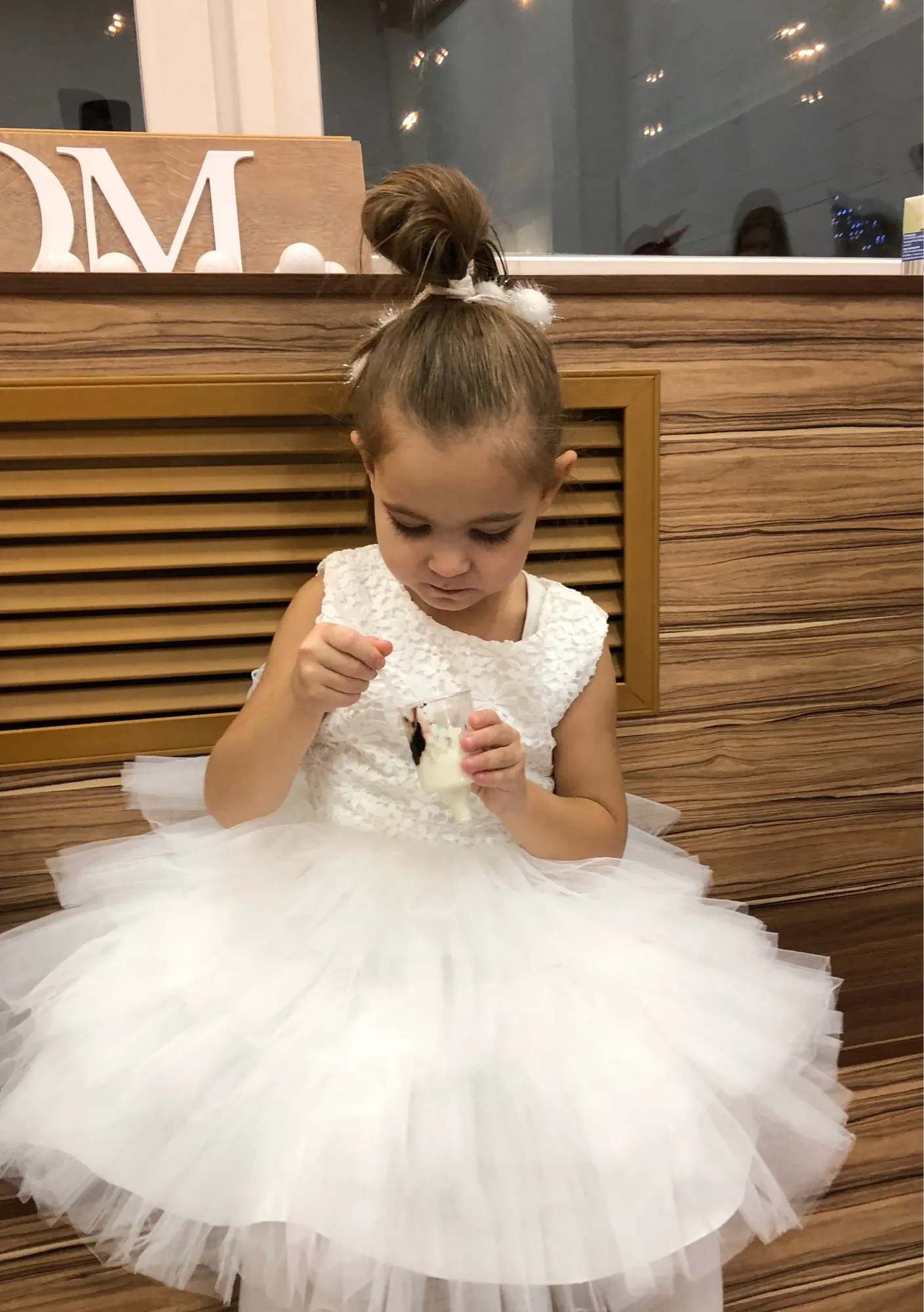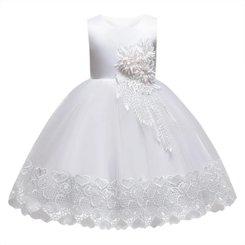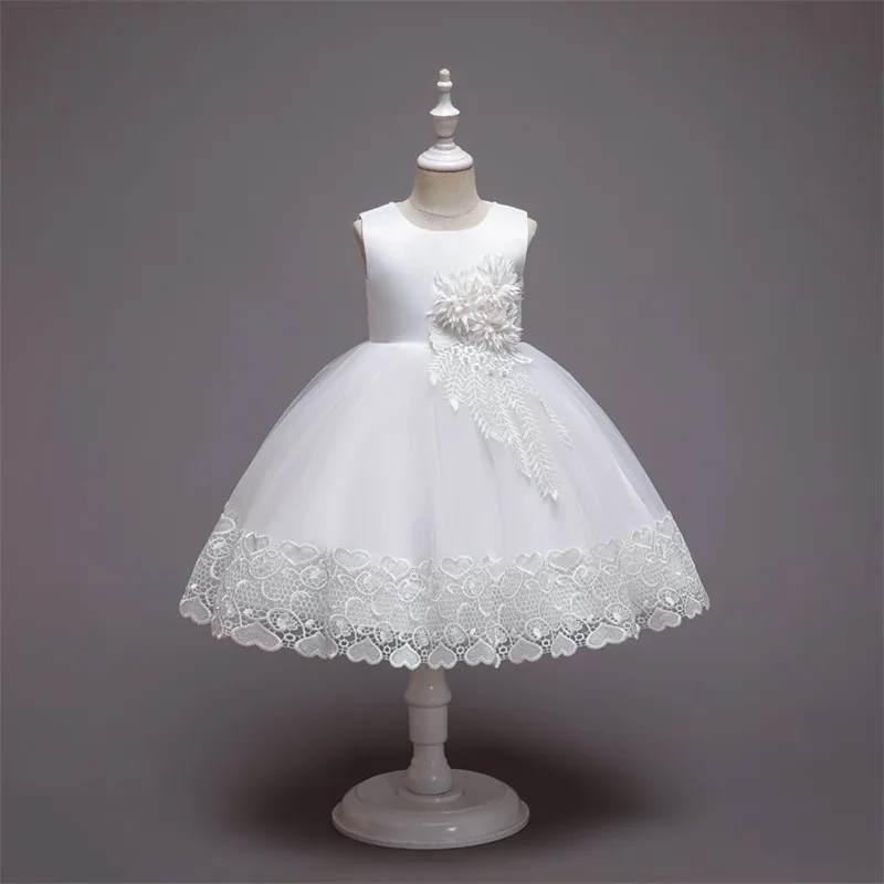 Кружевное платье-пачка для девочек, белое, с цветочной вышивкой