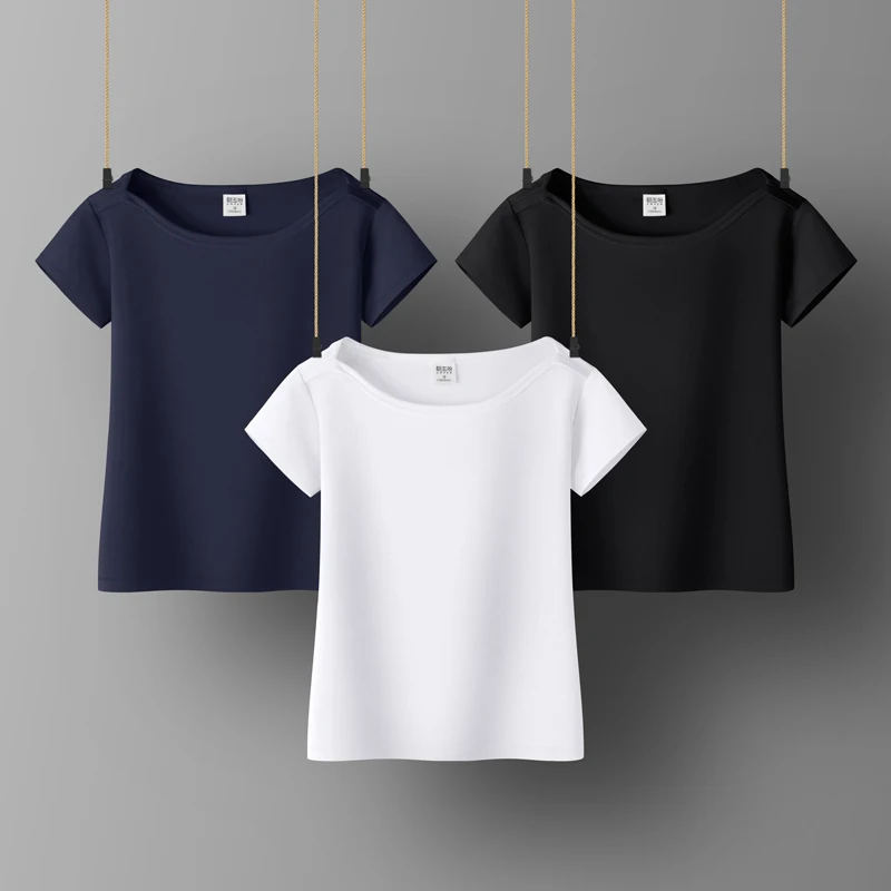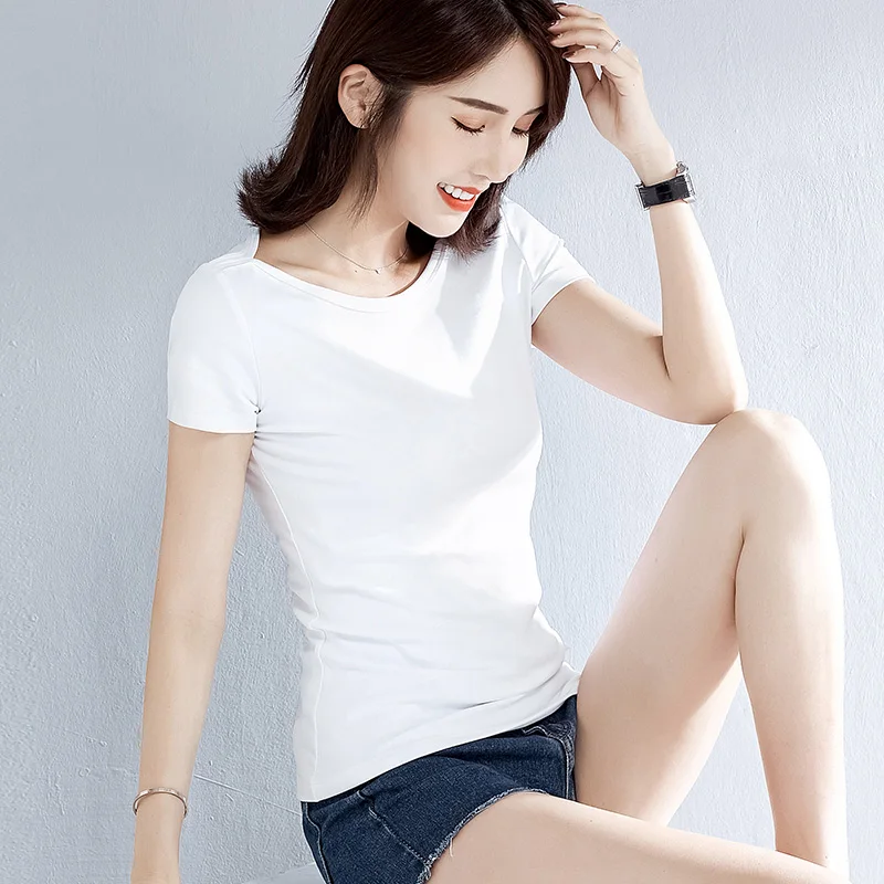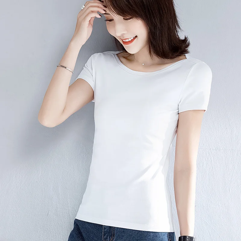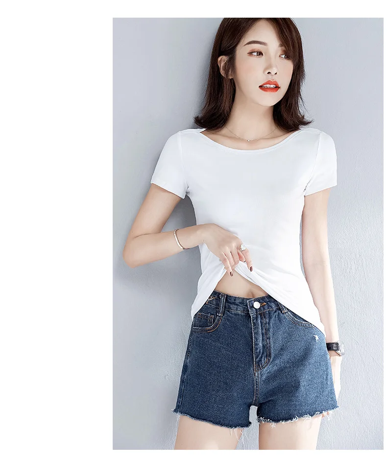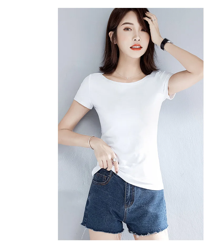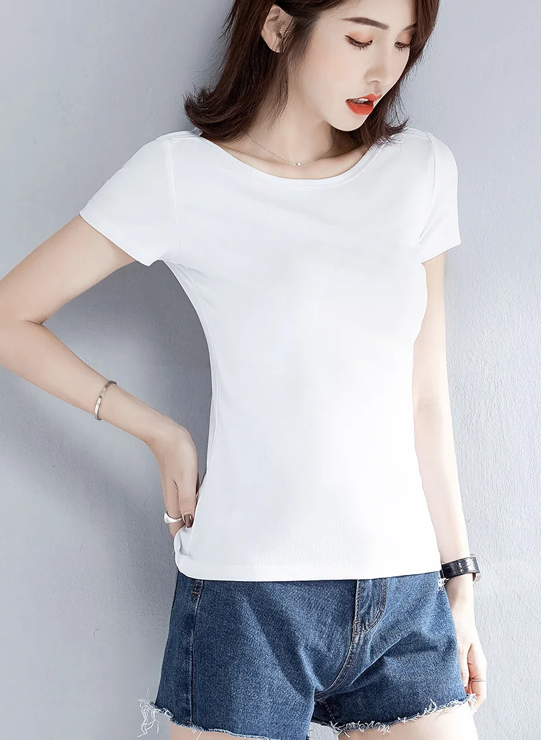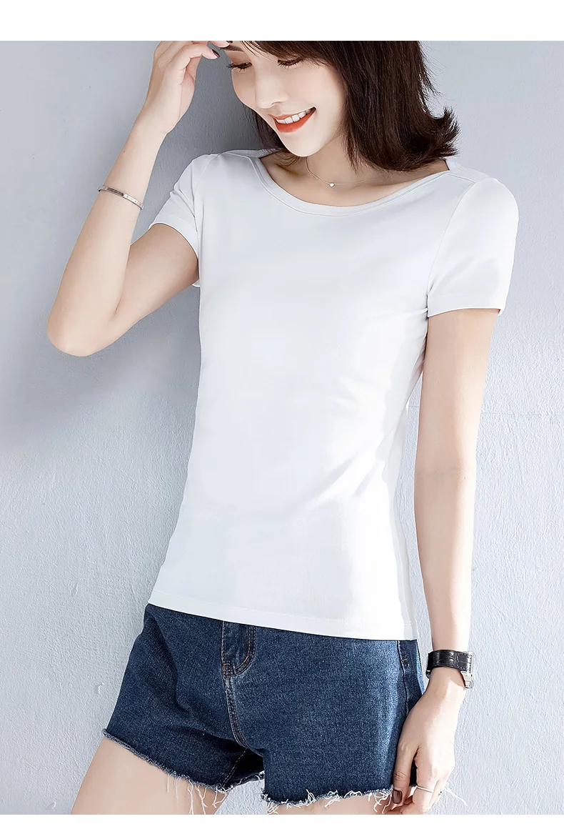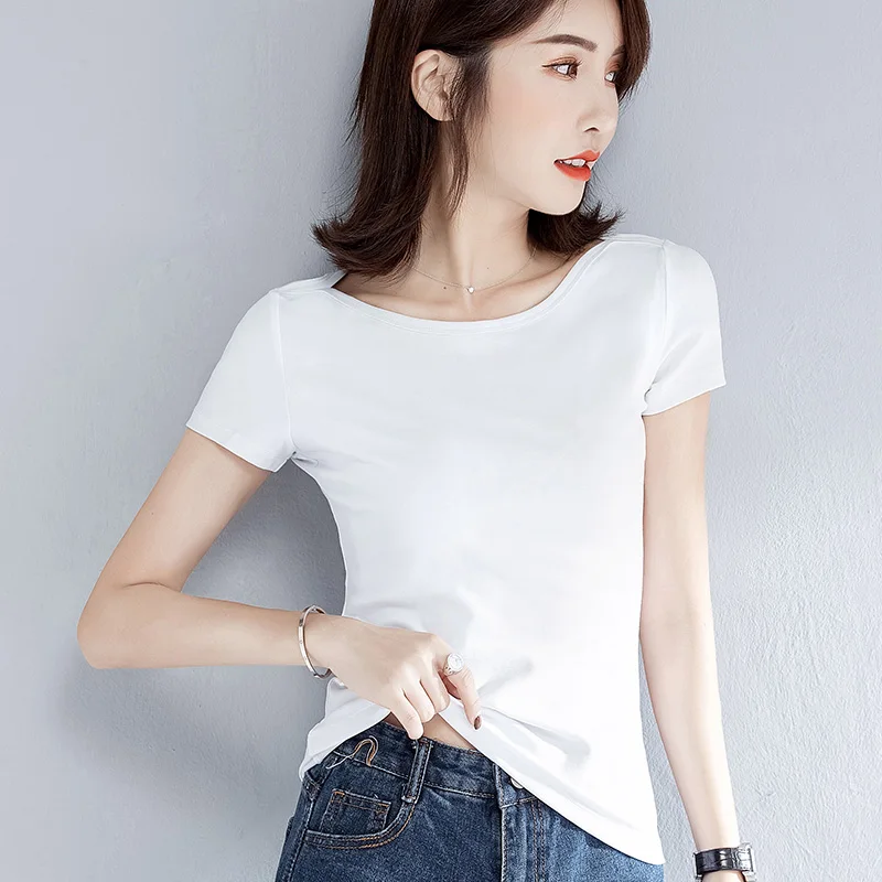 Футболка женская из мягкого хлопка, Однотонная рубашка с воротником-лодочкой, универсальная с коротким рукавом, на лето