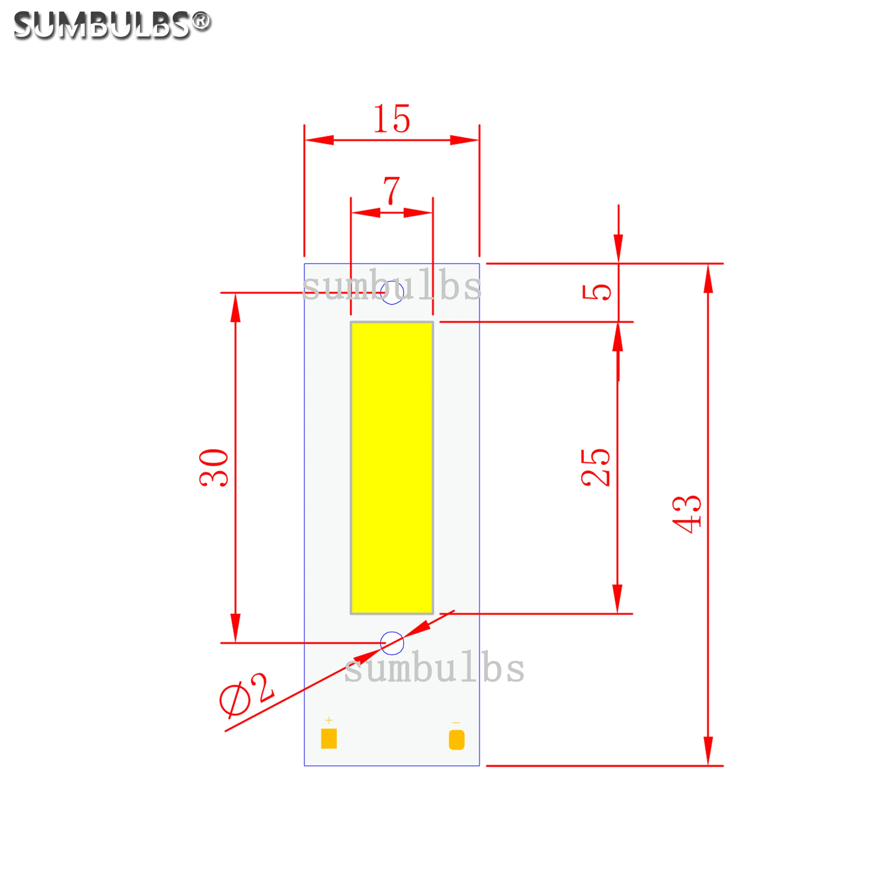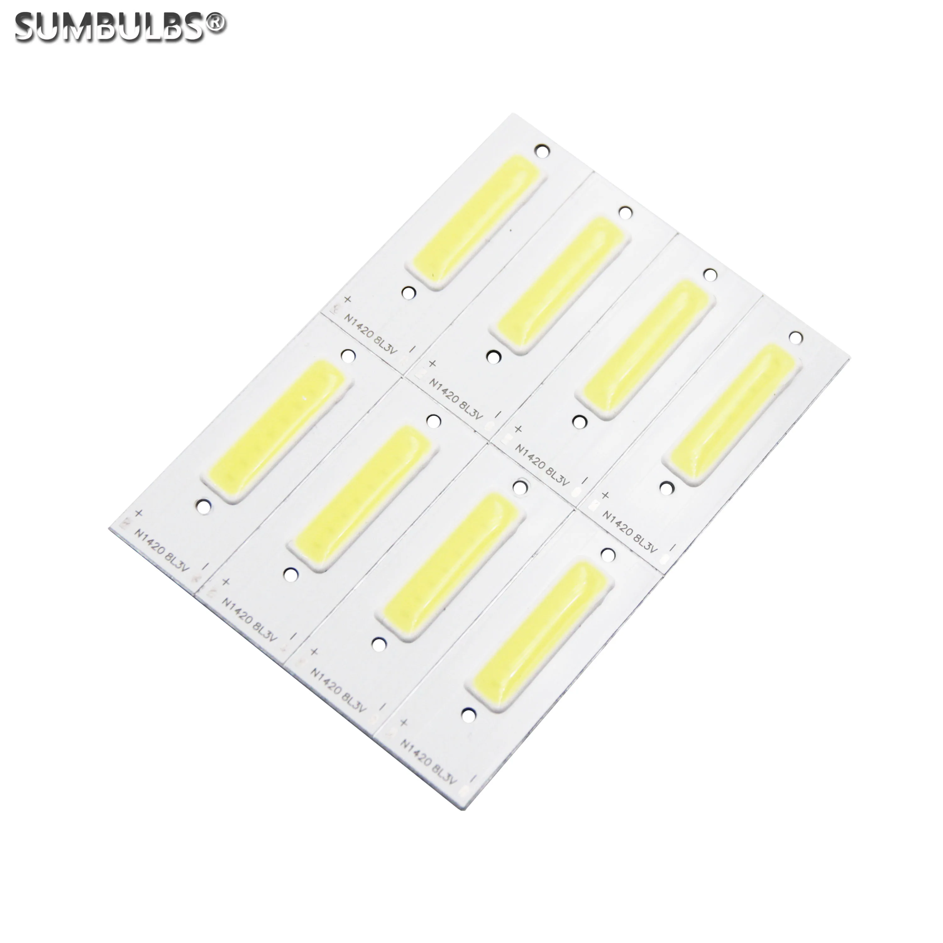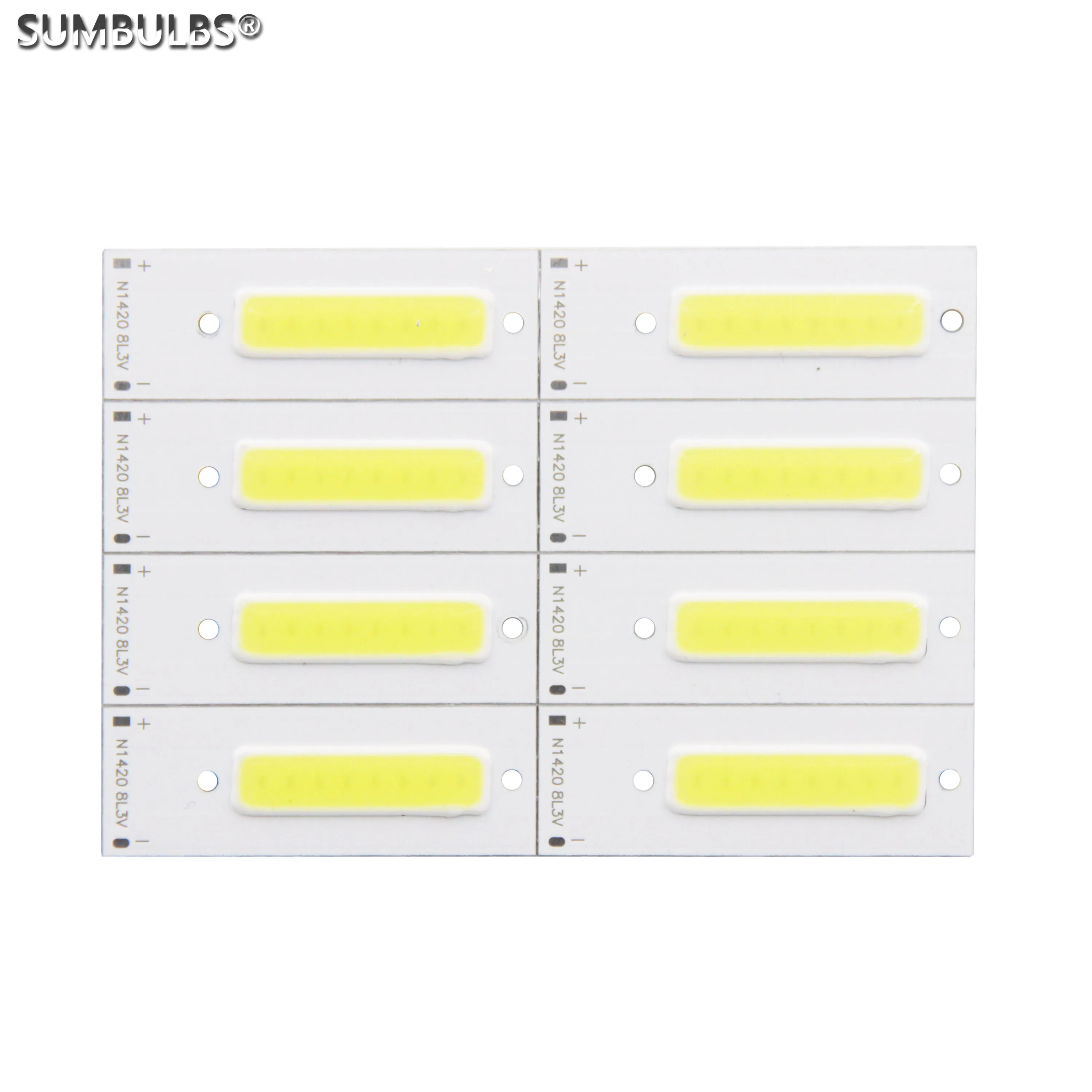 Чипы: филп-чип Материал: пластина из алюминиевого сплава + светодиод COB Мощность: 1,5 Вт Входное напряжение:Постоянный ток 3-3,7 в Максимальный ток:500 мА (1,5 Вт) Световой поток: 100 лм/Вт Цвет светильник Холодный белый (6000-7000K) Размер: 43 мм * 15 мм Площадь освещения: 25 мм * 7 мм Низкое затухание, затухание 1000 ч <1% Применение: рабочие огни, аварийные огни, автомобильные огни, велосипедные огни, декоративные огни, Внутренние огни DIY...