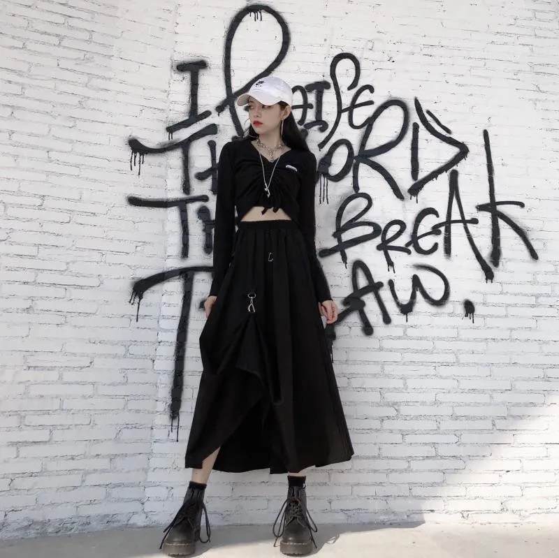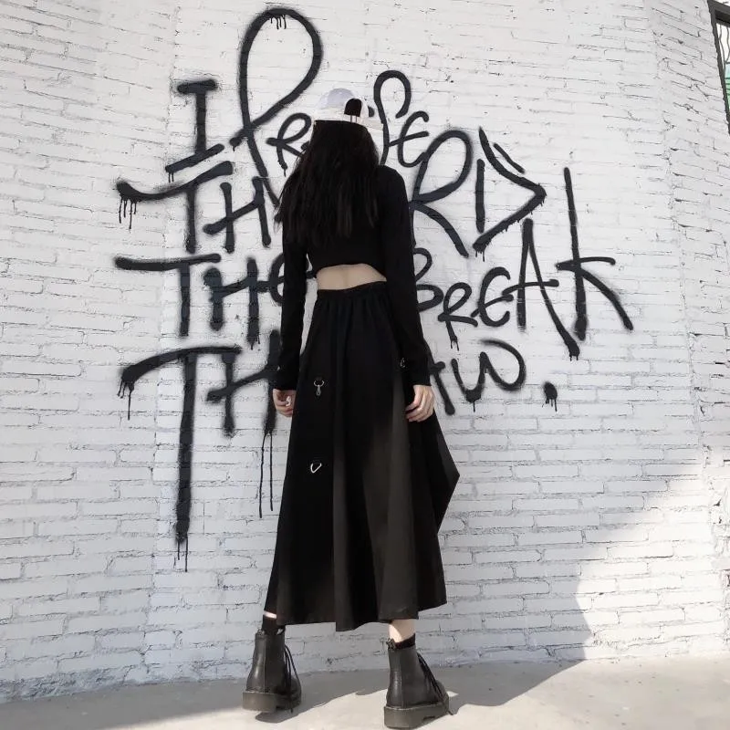 Юбка в стиле Харадзюку, Готическая Асимметричная черная уличная Рег...