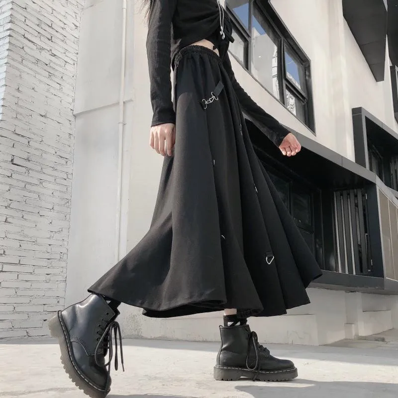 Юбка-миди женская черная, с высокой талией, в стиле Харадзюку