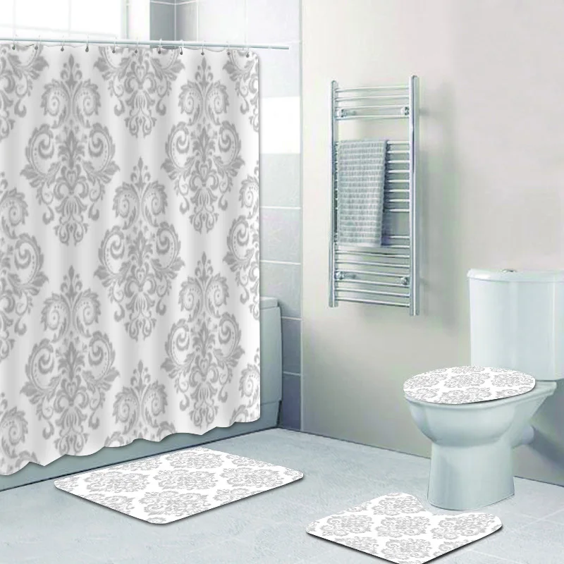 Роскошные Серебристые серые и белые занавески для душа в стиле барокко, викторианские Дамасские цветочные графические занавески для ванной комнаты, коврики для ванной, домашний декор