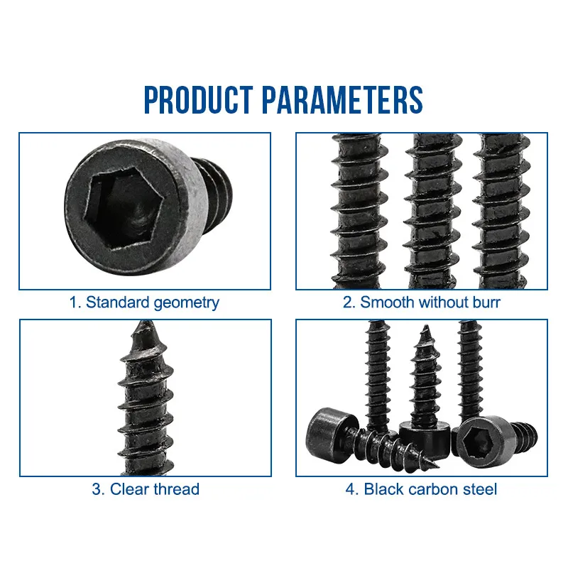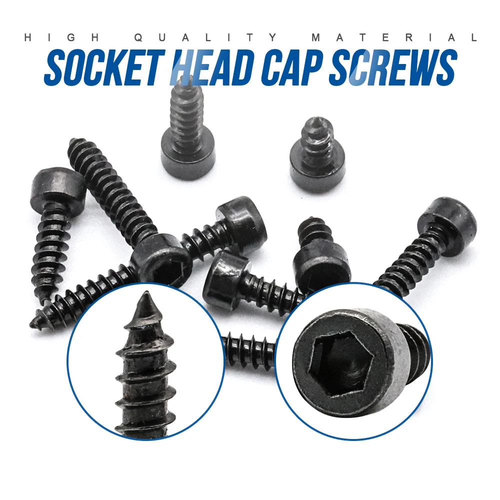 Самонарезающие винты NINDEJIN M2 M2.6 M3 M3.5 M4 M5 M6 с шестигранной головкой, черная углеродистая сталь 8,8 класса винт с внутренней шестигранной головкой